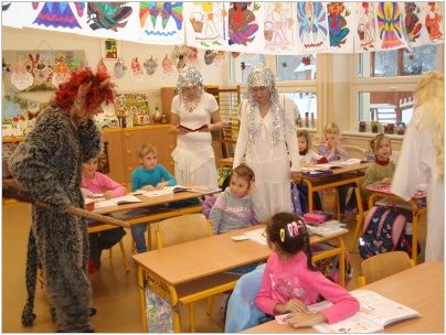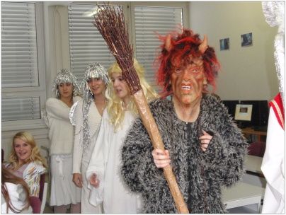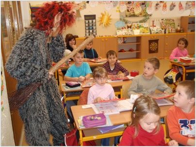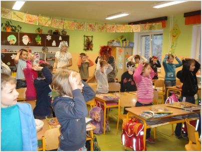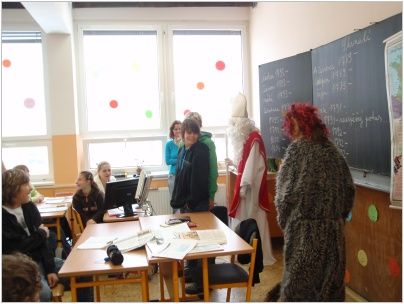 Zástup andělů v čele s Mikulášem a čertem zamířil nejdříve k nejmenším žáčkům školy, kteří se strachem v očích sborově zazpívali hezké písničky. Poté se pekelná akce přesunula na druhý stupeň. Naštěstí čert neodnesl žádného zlobivce, a tak mohlo vyučování pokračovat dál. Všechny děti byly obdarovány sladkostmi a drobnými dárky.