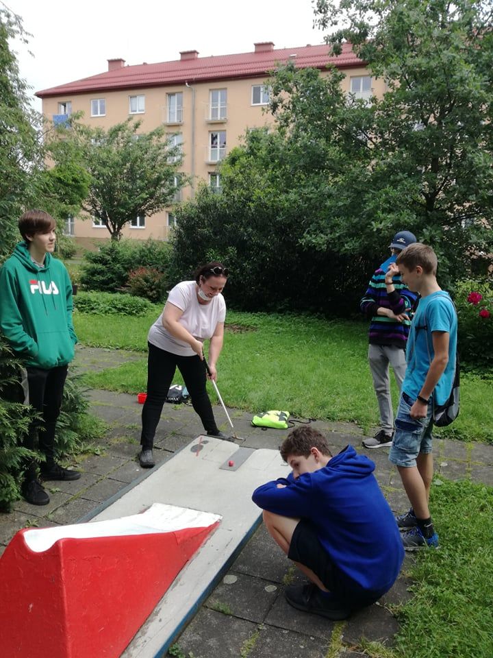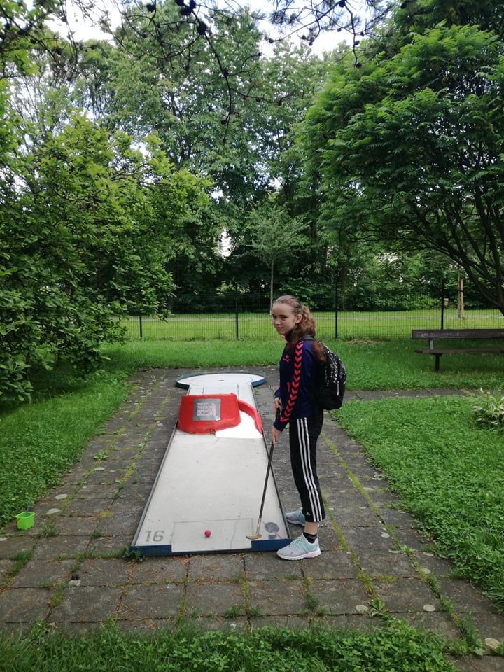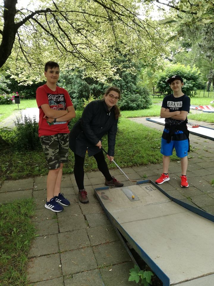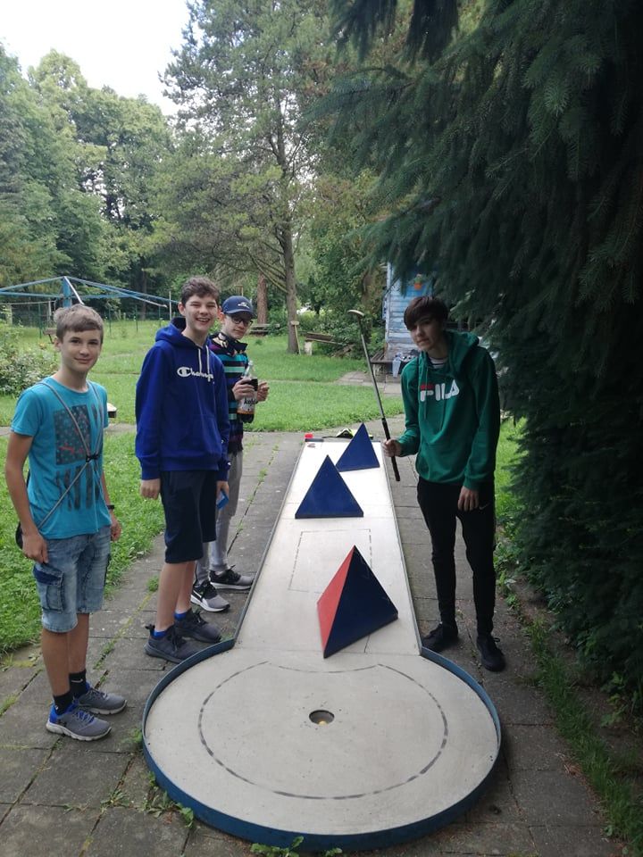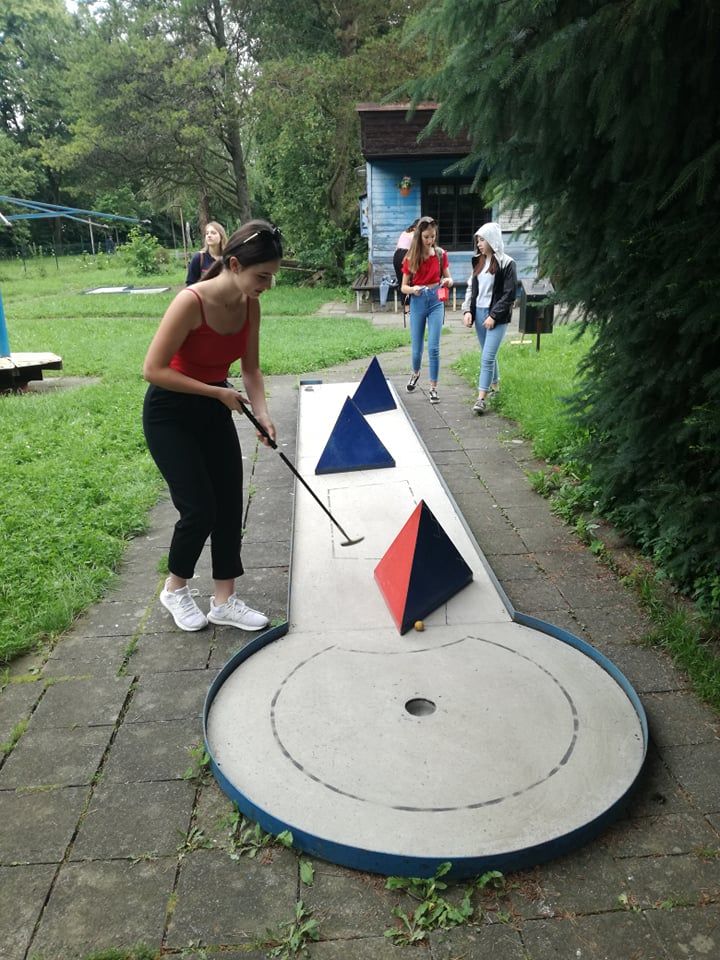 I když předpověď počasí nebyla příznivá, odvážně jsme vyrazili během pobytu v přírodě na místní minigolf na Trávníkách.