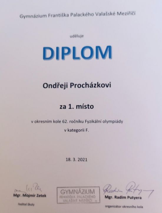 Dne 18.3.2021 se na Gymnáziu Františka Palackého ve Valašském Meziříčí konalo okresní kolo 62. ročníku FO.