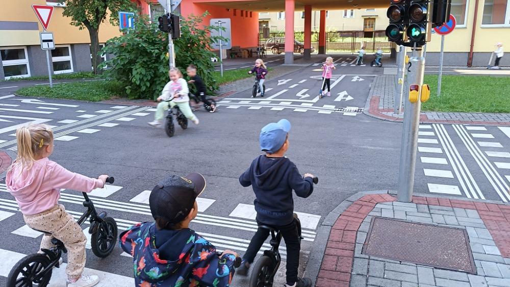 Velké poděkování patří ZŠ Trávníky za možnost navštívit jejich dopravní hřiště, kde si děti užily spoustu zábavy.