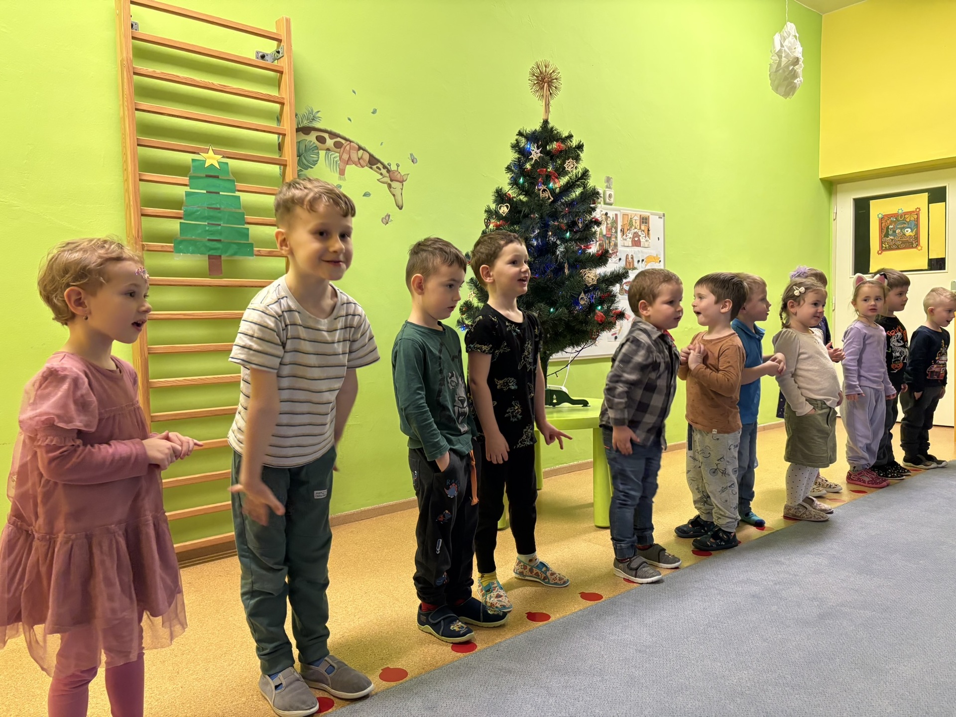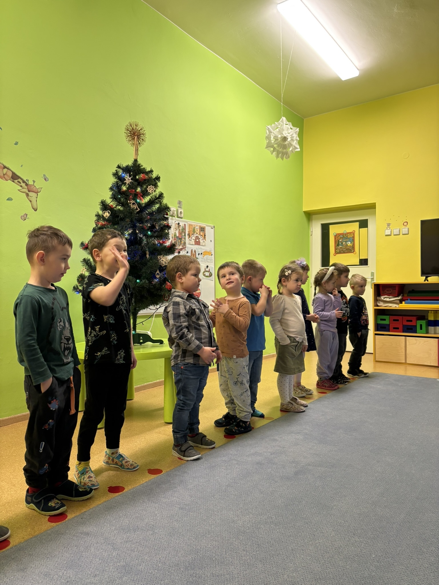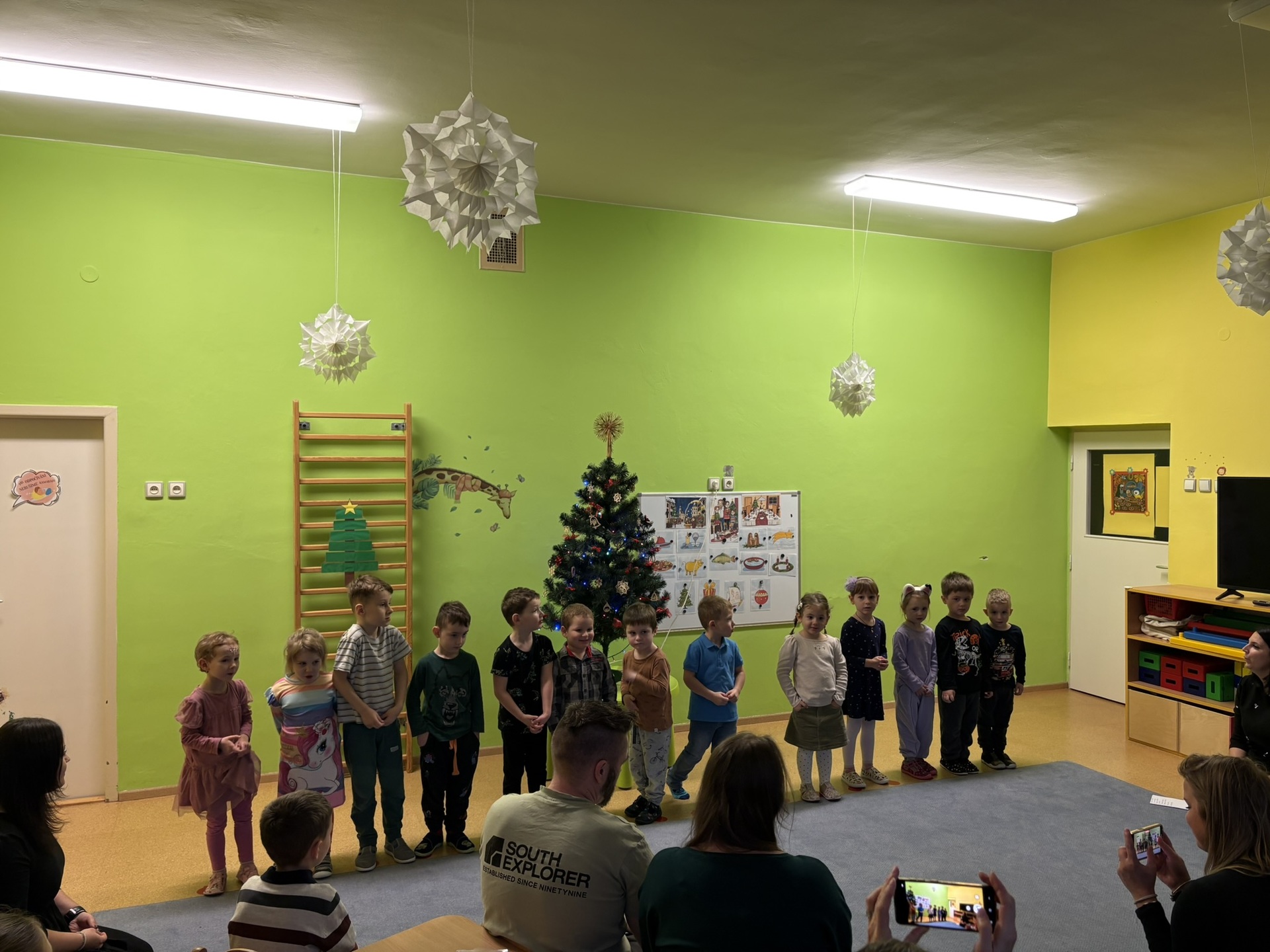 Děti přivítaly rodiče pásmem vánočních koled a básniček. S radostí a soustředěním předvedly, co se během adventního období naučily. Příjemným zpestřením bylo zapojení rodičů, kteří se ke zpěvu koled přidali a společně s dětmi tak vytvořili velmi hezký a přátelský okamžik.