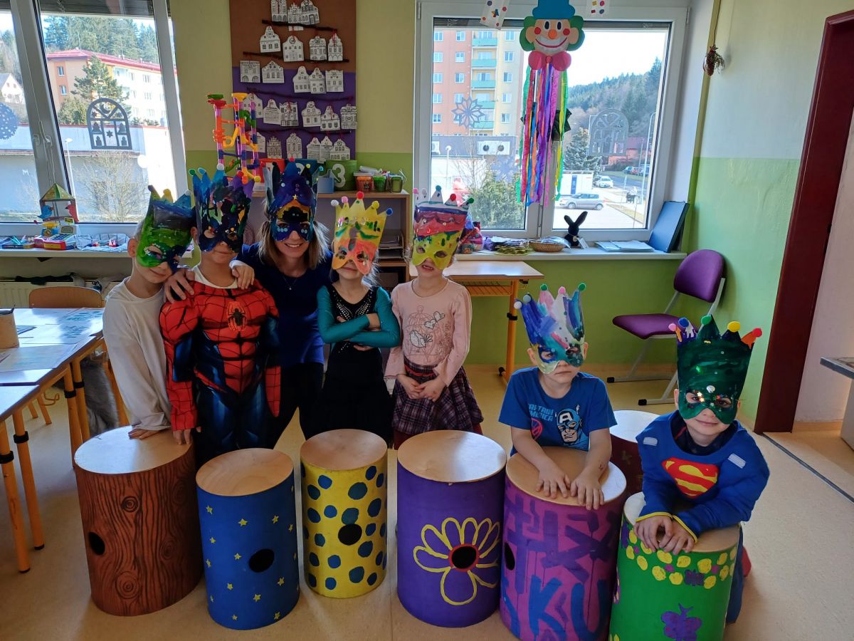 V zimě byl čas na pohádky. A my jsme pohádkami a zimou prosvištěli, spoustu věcí jsme se naučili a pochopili. Tak například: Vyprávění pohádek pozorně posloucháme. Pohádku umíme poskládat podle děje. Rodičům jsme pohádku zahráli. Dokonce umíme vyjmenovat všechny měsíce, které navštívila Maruška. A jak vypadá taková pohádka v divadle, jsme už také zjistili. Proto jsme si zasloužili pořádnou oslavu v džungli.