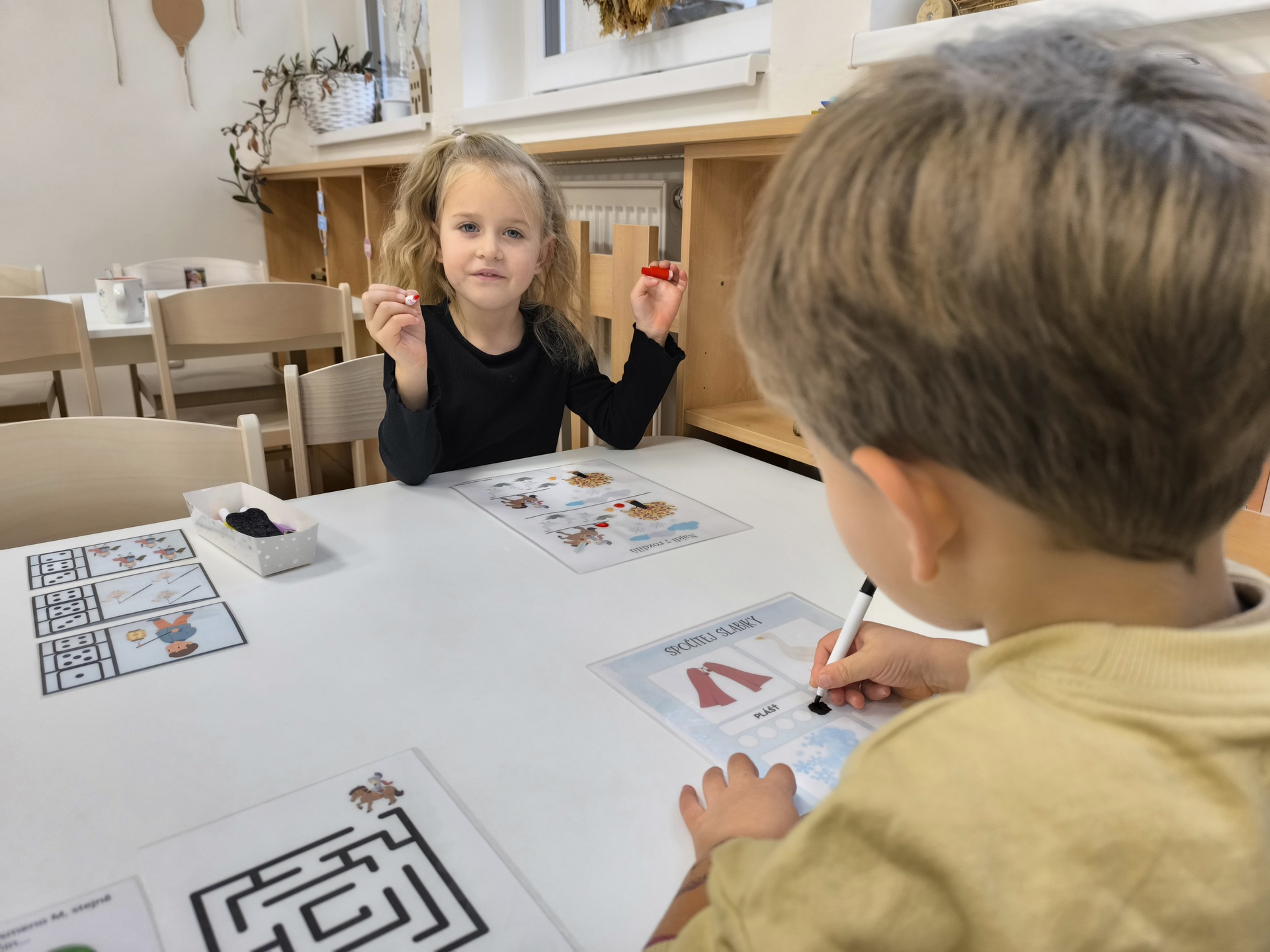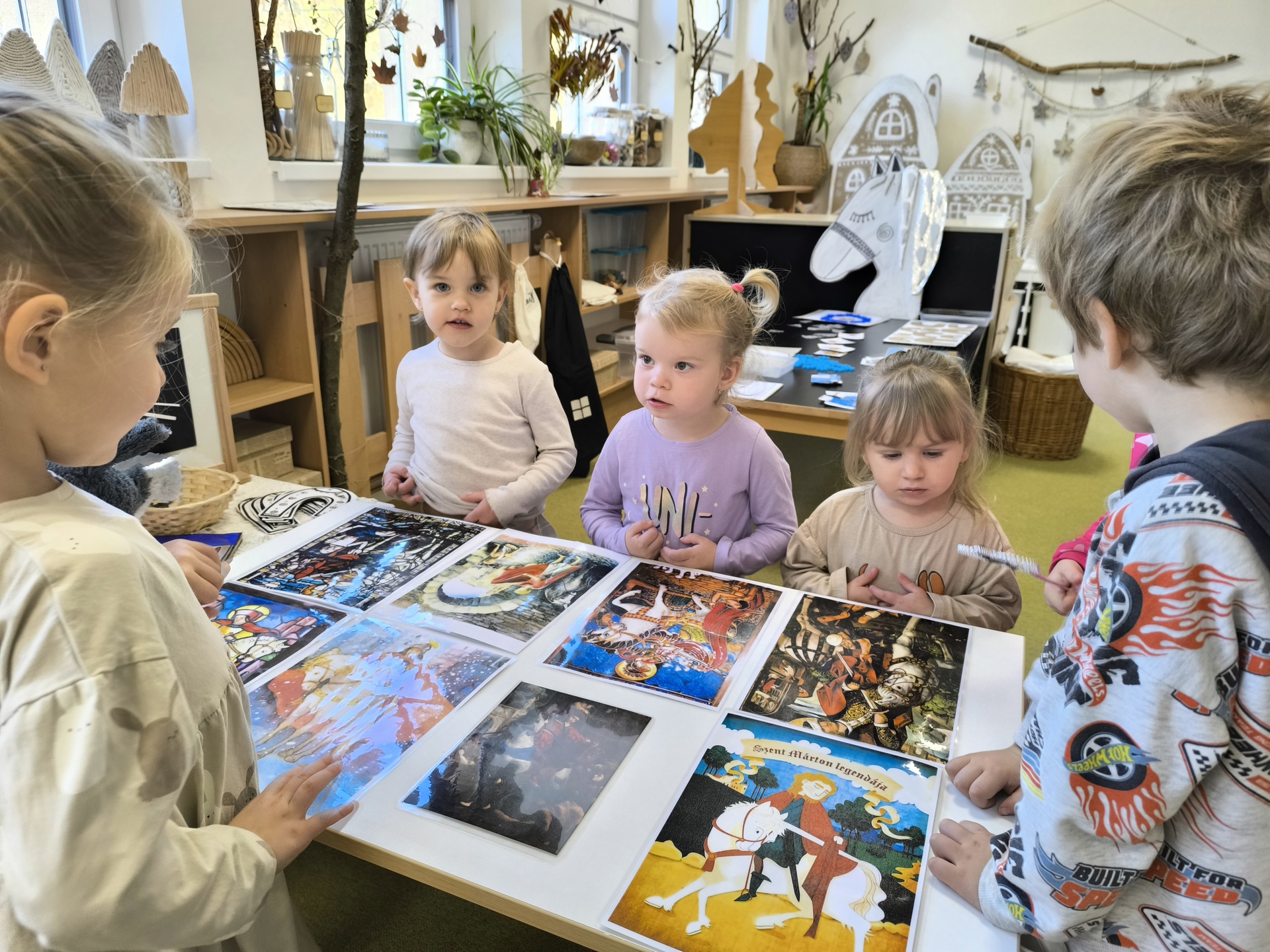 Děti se během tématických dnů seznámily s příběhem o statečném Martinovi, který se dokázal rozdělit s potřebným. Formou her, tvoření i písniček prožily atmosféru tohoto svátku.