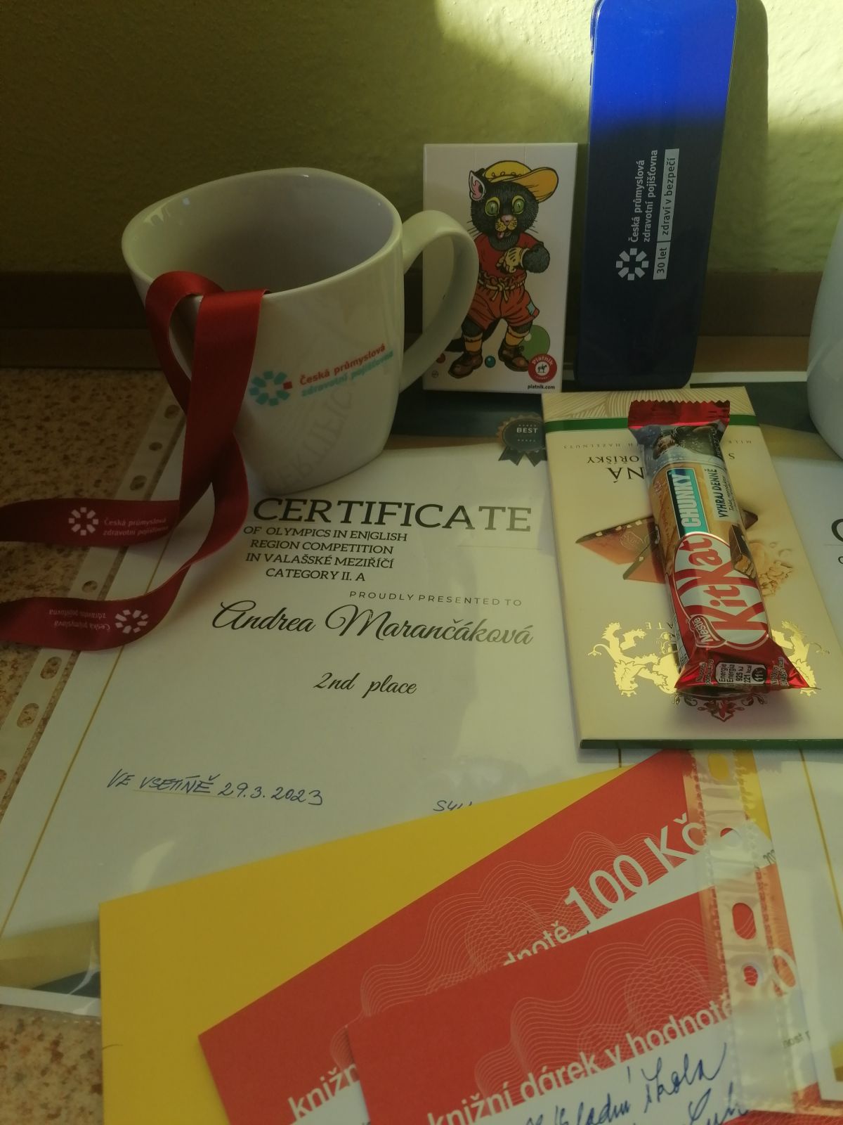 Jako odměnu obdrželi poukaz na knihu dle vlastního výběru a několik praktických cen od našeho věrného dárce – České průmyslové zdravotní pojišťovny.