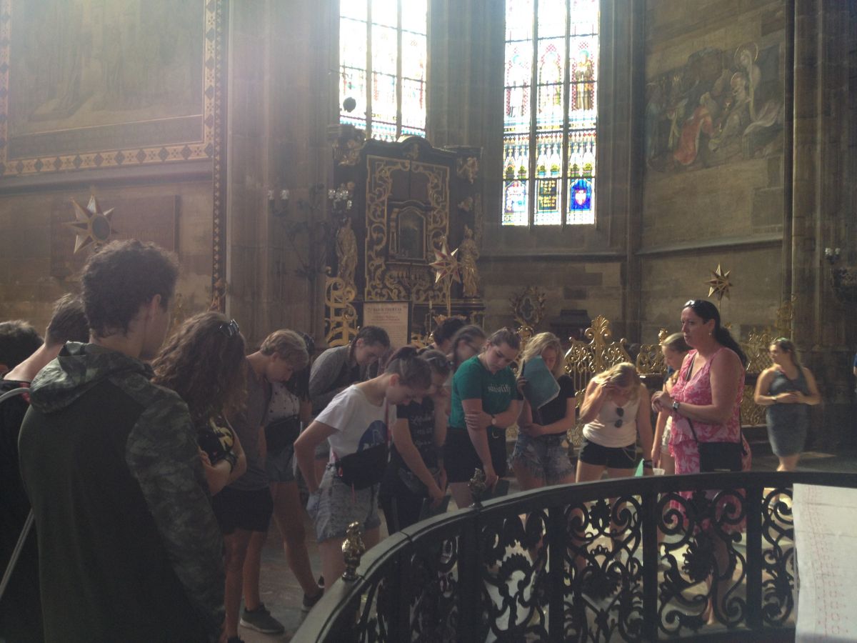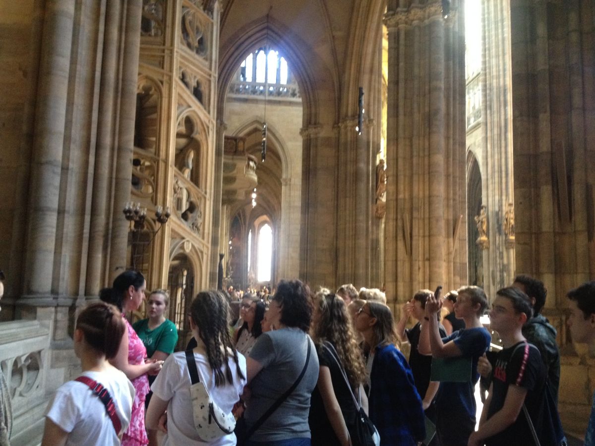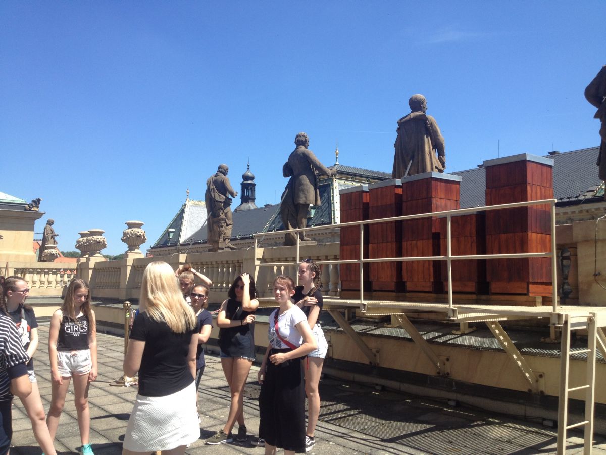 Po příjezdu do Prahy jsme se prošli tzv. Královskou cestou od Obecního domu, přes Staroměstské náměstí, Karlův most a Malostranské náměstí až k Pražskému hradu. Malou odbočku jsme pak udělali do sídla České filharmonie, nádherné novorenesanční budovy Rudolfina. Měli jsme možnost prohlédnout si celé město ze střechy této instituce. Cestou jsme také viděli např. Stavovské divadlo, kde měly premiéry opery Wolfganga Amadea Mozarta.