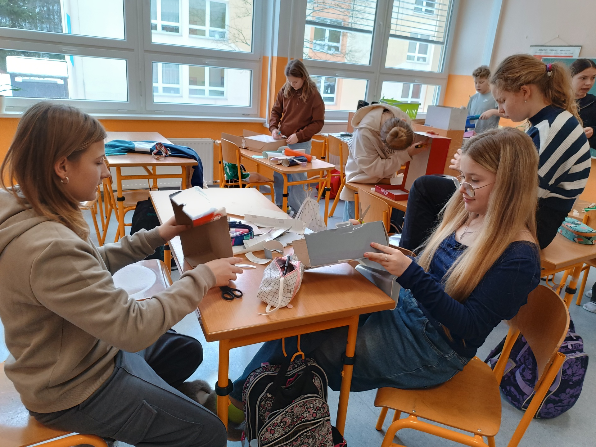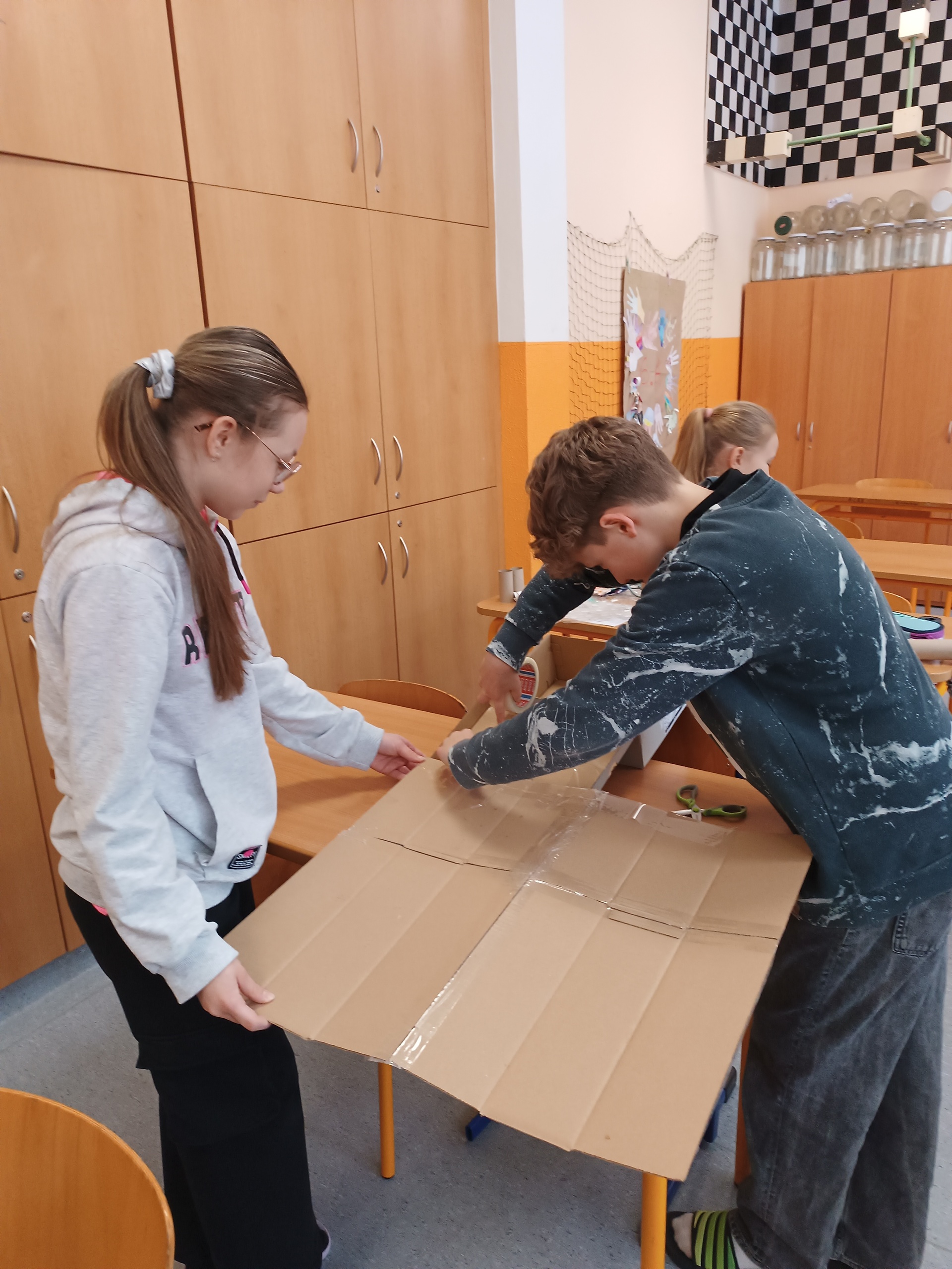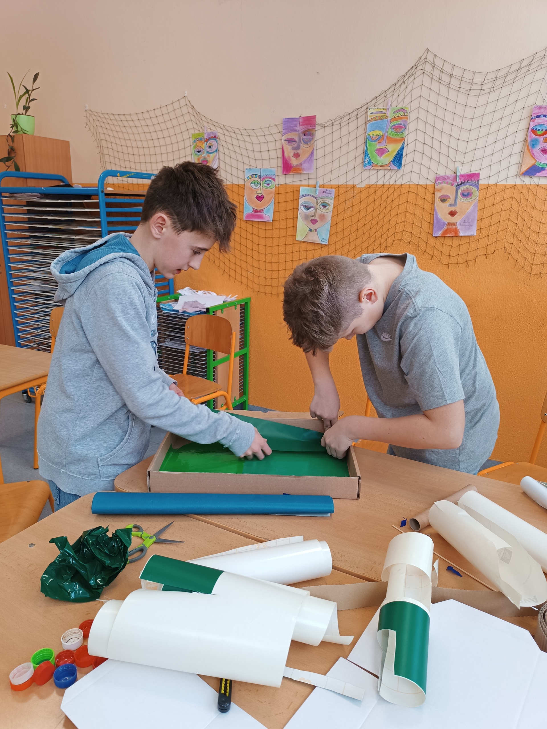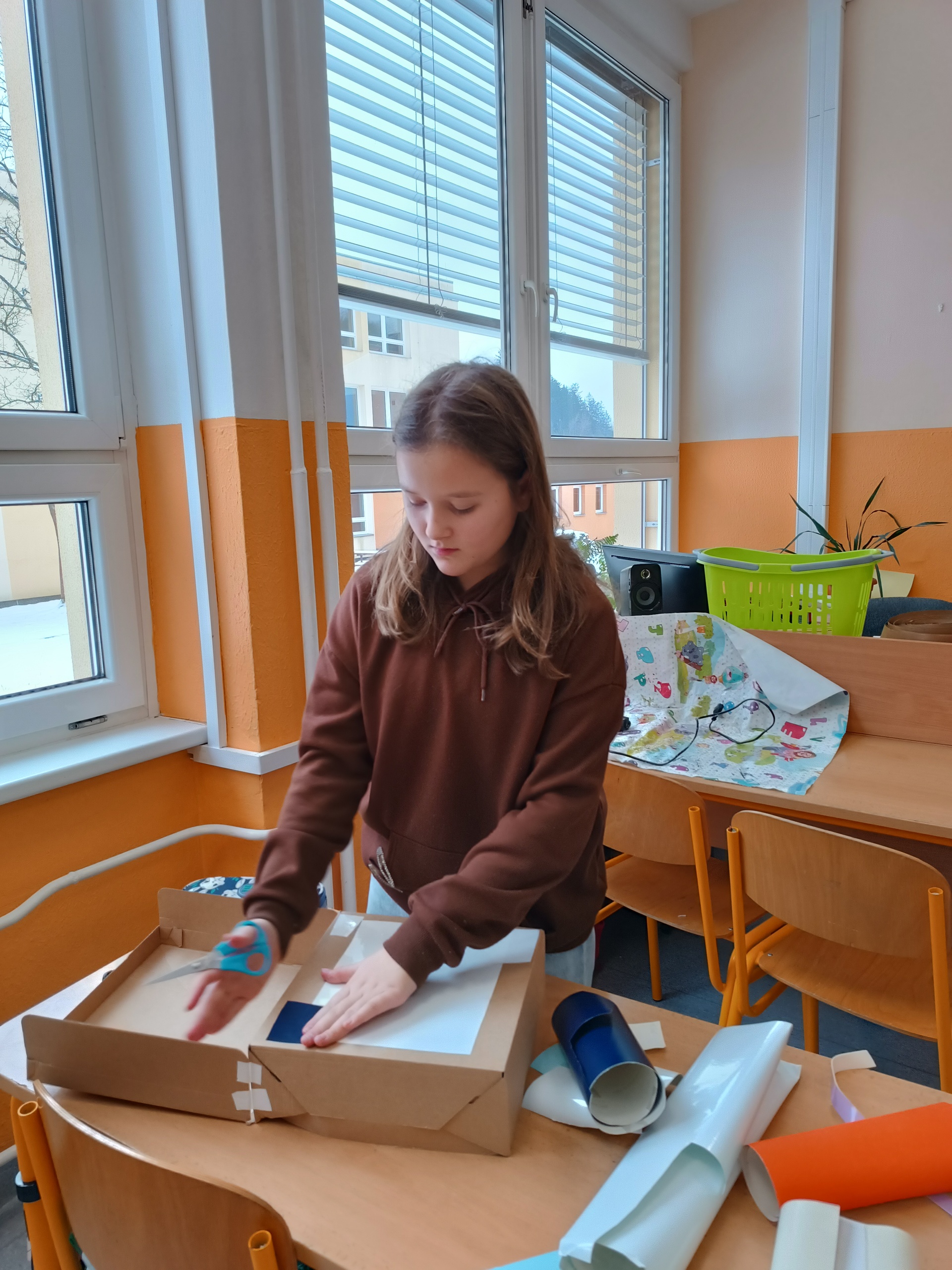 Žáci ze 6. B vyráběli ve výtvarné výchově bludiště pro skleněné kuličky. Využili staré krabice, tapety, roličky... a další bylo na jejich fantazii. Myslím, že vznikla zajímavá bludiště a šesťákům moc děkuji za perfektní práci. Vyučující Vlasta Moudrá.