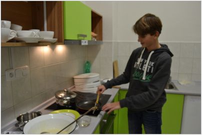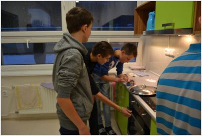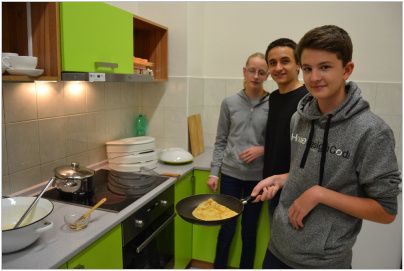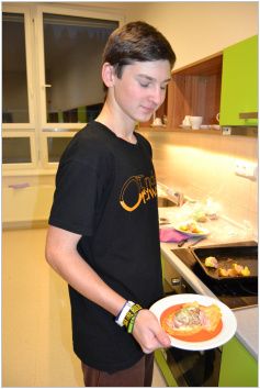 V češtině to znamená brambory v kabátu, což je v Anglii druhé nejoblíbenější jídlo po Fish and Chips. Deváťáci předvedli, jak jsou zruční v kuchařském umění :o). Někteří si dokonce stihli připravit ještě dezert v podobě lahodných palačinek. Odpoledne se nám vydařilo. Žáci byli spokojení se svými „JACKET POTATOES“ a těšili se, až tuhle dobrůtku připraví pro své rodiče a kamarády.