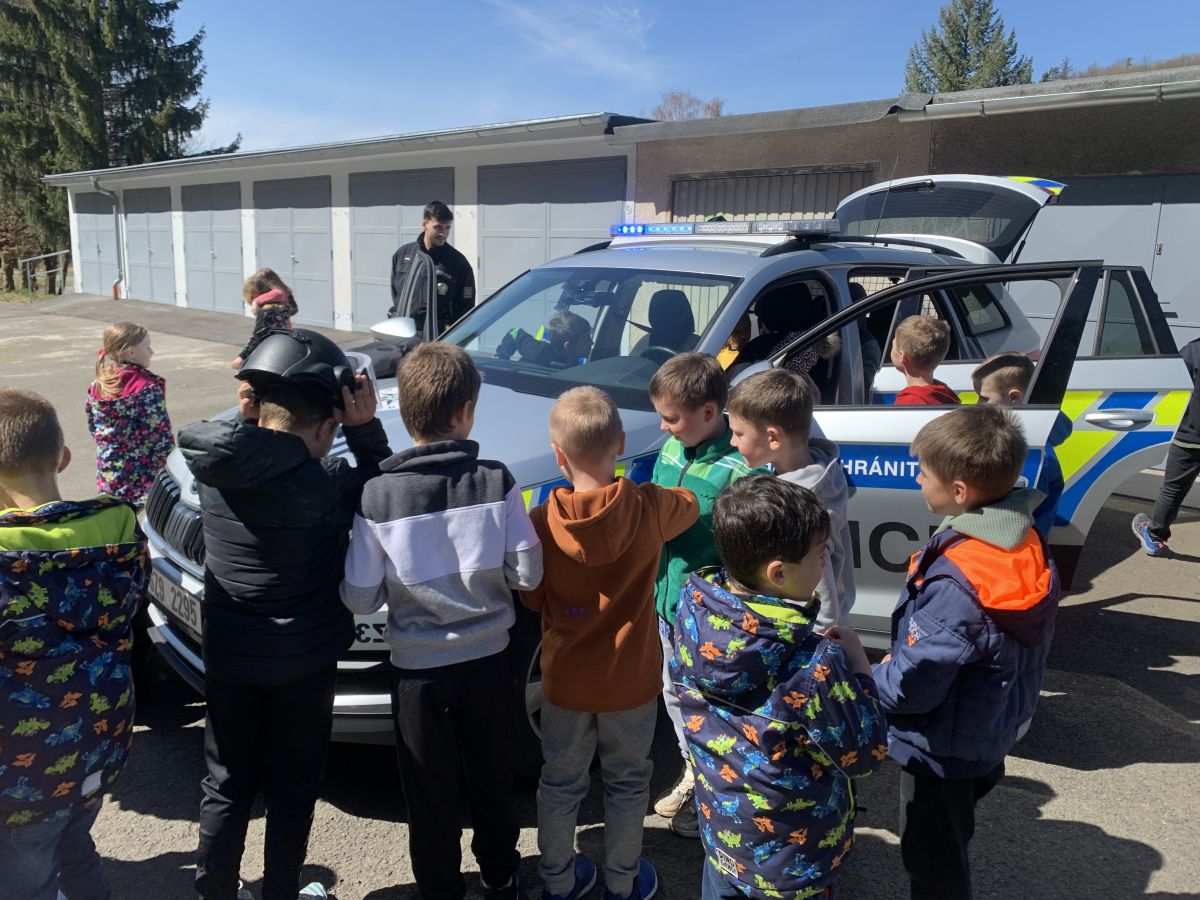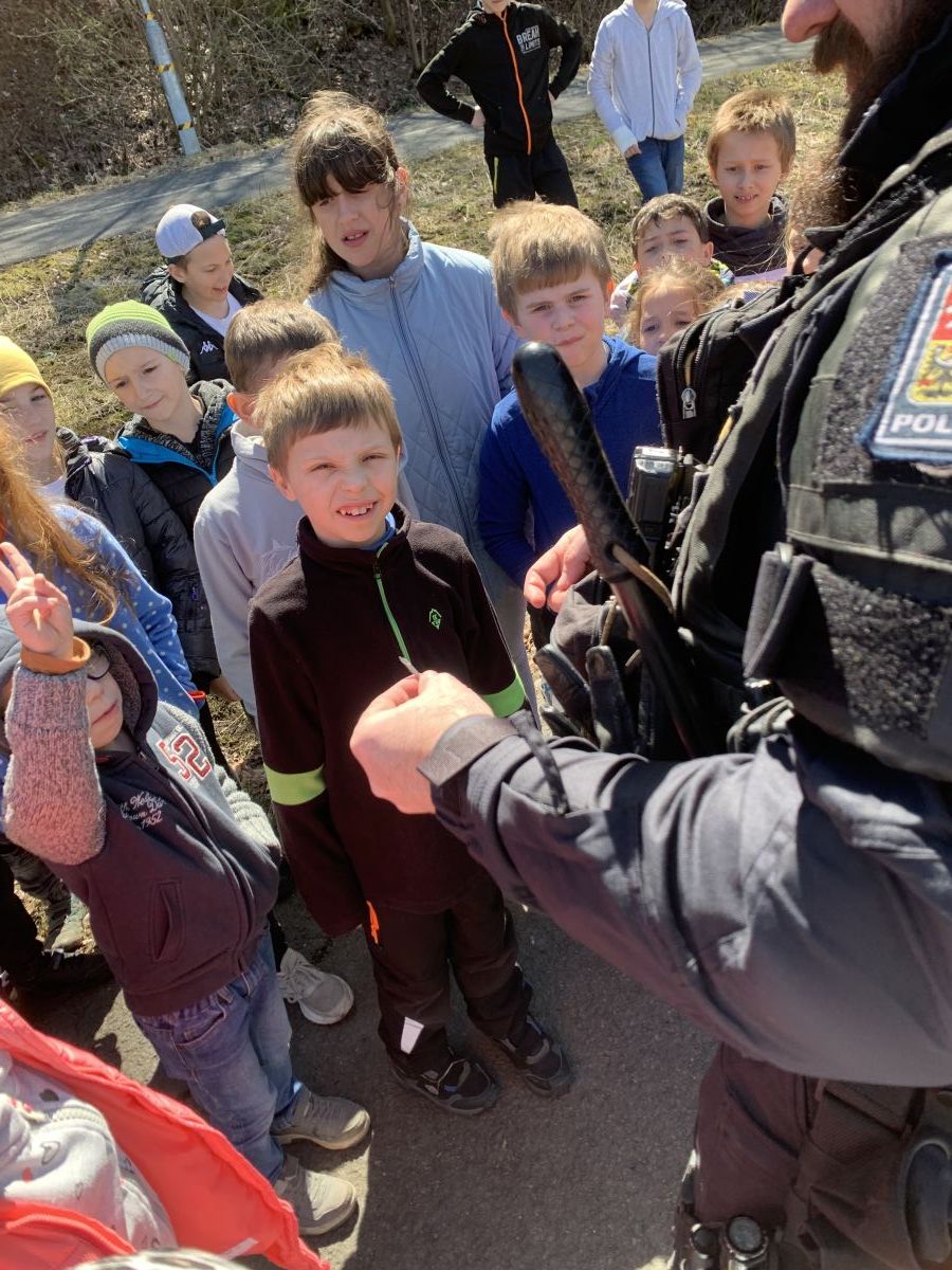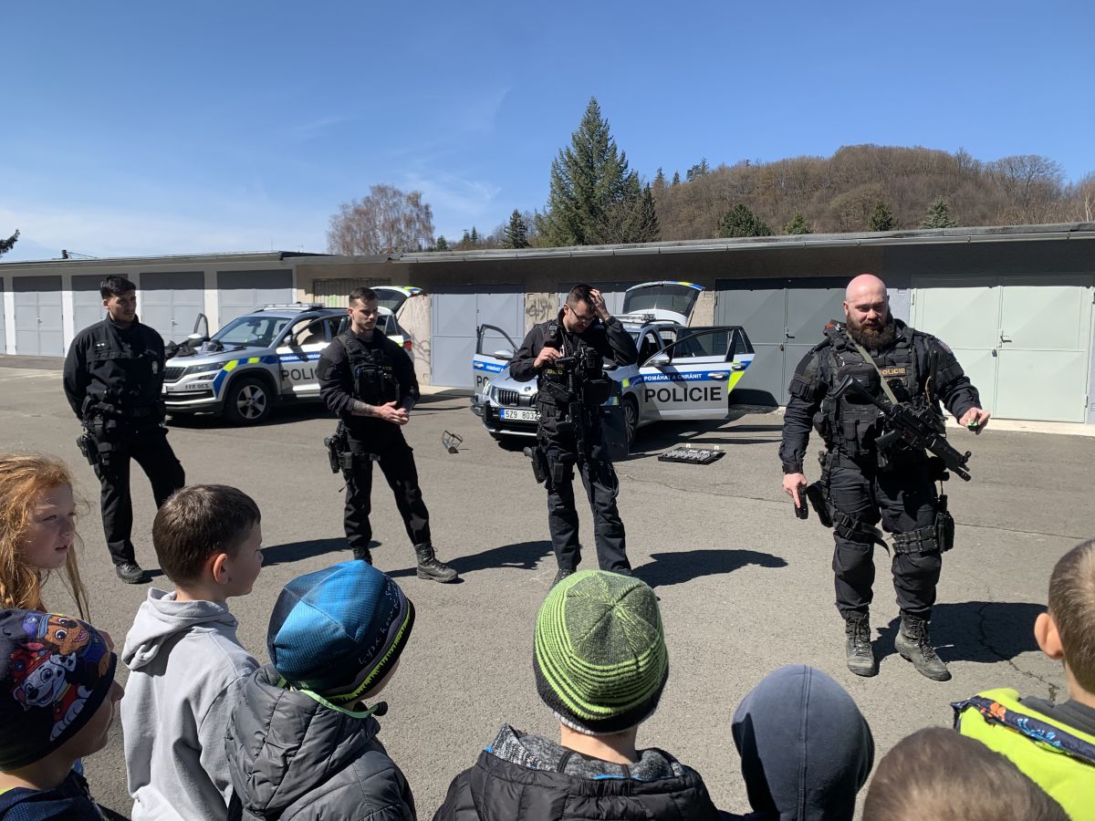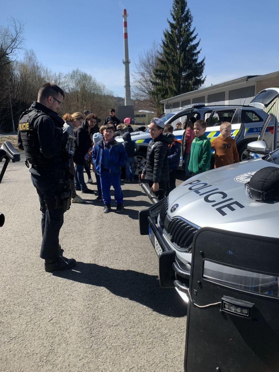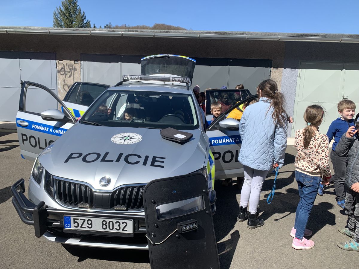 Policisté nám vysvětlili, co všechno obnáší jejich práce. Společně jsme si vyjasnili, kdy je vhodné policii přivolat a jak postupovat, zopakovali si důležitá telefonní čísla a ještě nám zbyl čas na dotazy. Auta jsme prošmejdili křížem krážem a vyzkoušeli jsme si helmu, pouta, štít, vestu a další policejní oděvy.