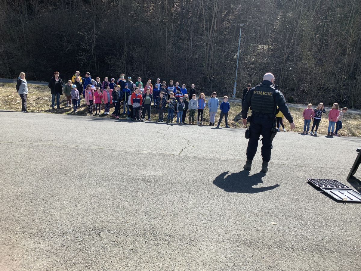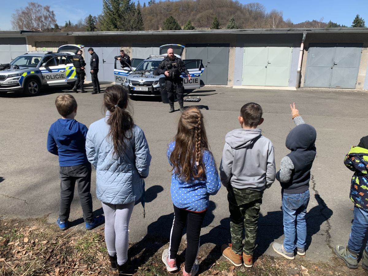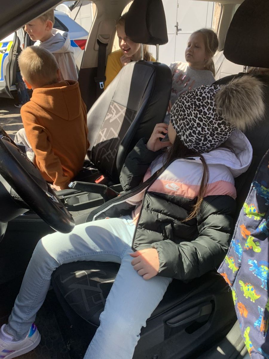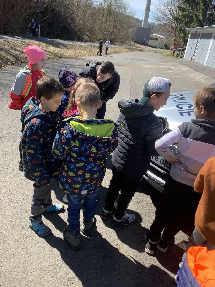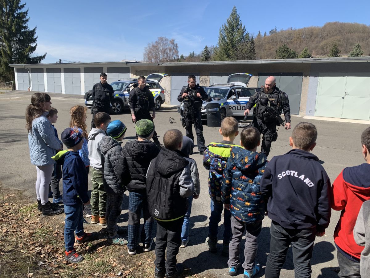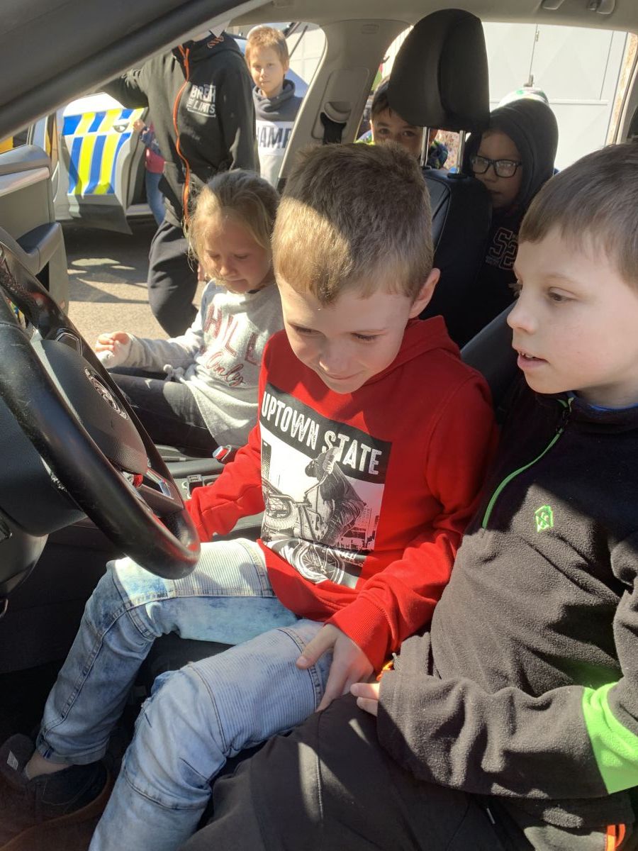 Policisté nám vysvětlili, co všechno obnáší jejich práce. Společně jsme si vyjasnili, kdy je vhodné policii přivolat a jak postupovat, zopakovali si důležitá telefonní čísla a ještě nám zbyl čas na dotazy. Auta jsme prošmejdili křížem krážem a vyzkoušeli jsme si helmu, pouta, štít, vestu a další policejní oděvy.