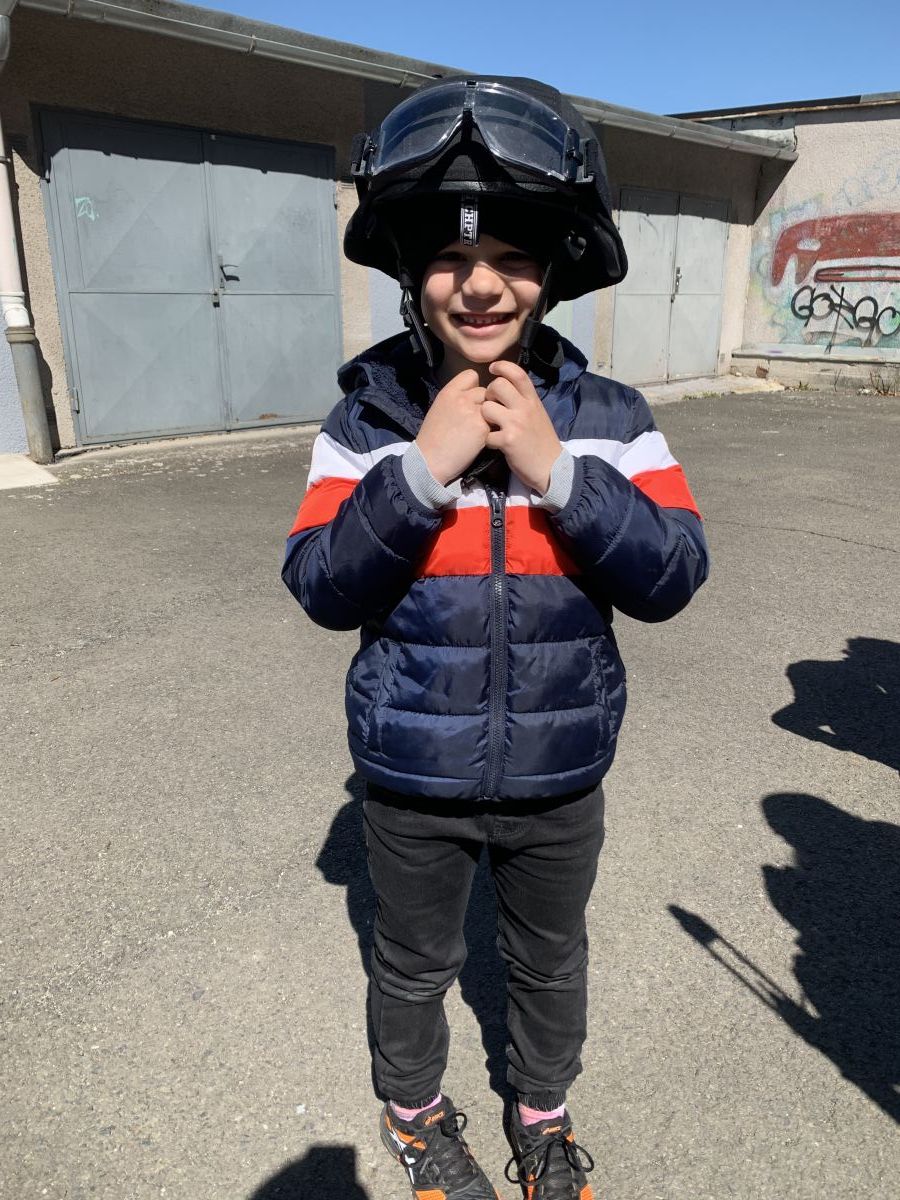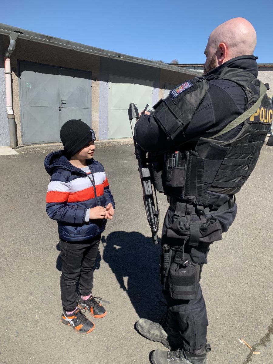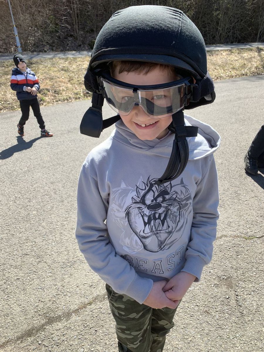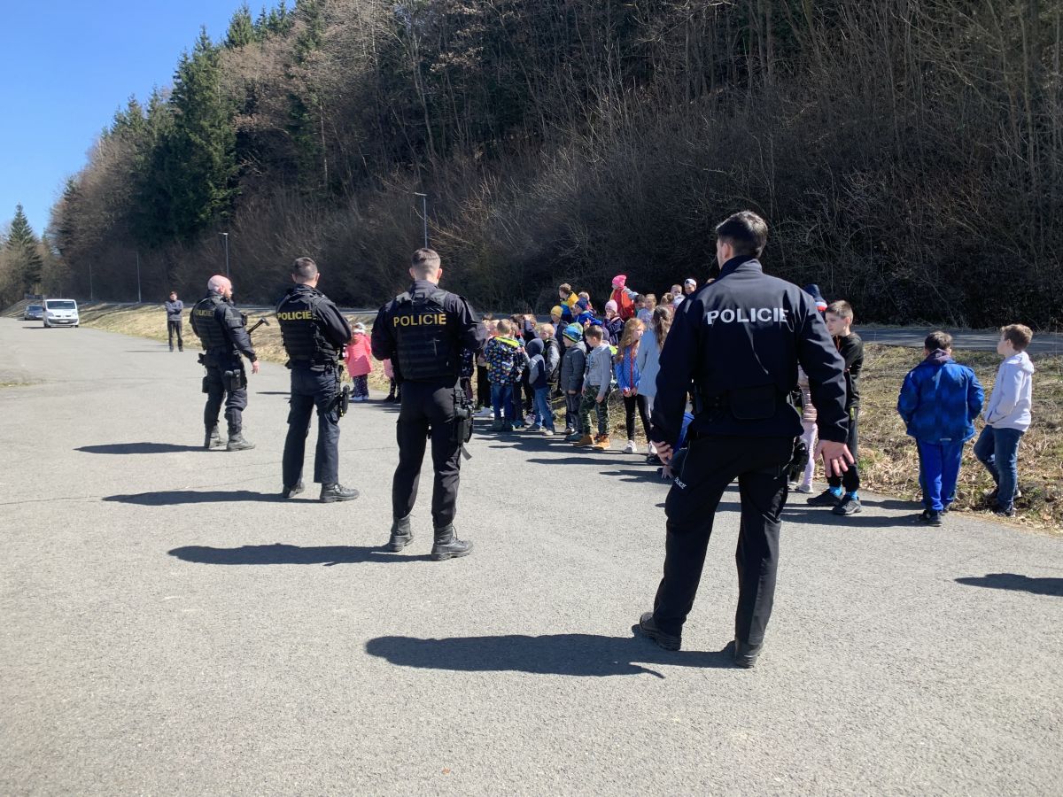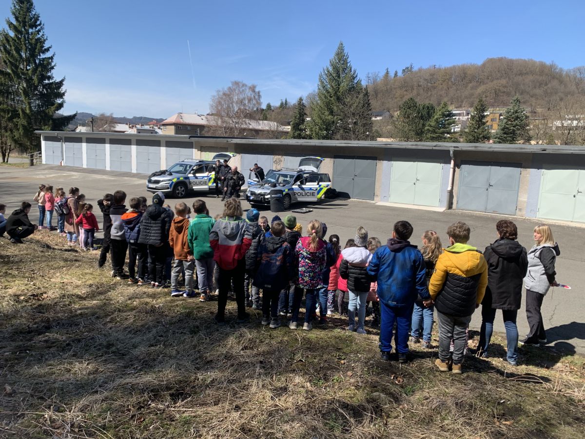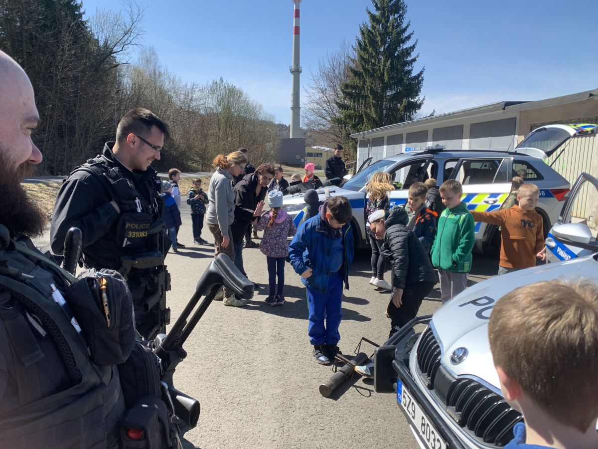 Policisté nám vysvětlili, co všechno obnáší jejich práce. Společně jsme si vyjasnili, kdy je vhodné policii přivolat a jak postupovat, zopakovali si důležitá telefonní čísla a ještě nám zbyl čas na dotazy. Auta jsme prošmejdili křížem krážem a vyzkoušeli jsme si helmu, pouta, štít, vestu a další policejní oděvy.