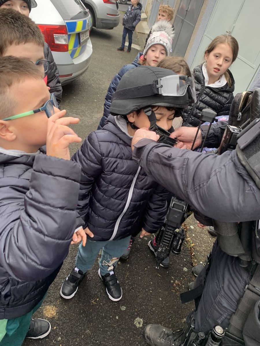 V pátek 14. dubna jsme se s žáky ŠK a ŠD vydali prozkoumat policejní auta a policejní techniku. S policisty jsme si povídali o tom, co obnáší jejich práce, vyjasnili jsme si, kdy je vhodné policii přivolat a také jsme si zopakovali důležitá telefonní čísla.