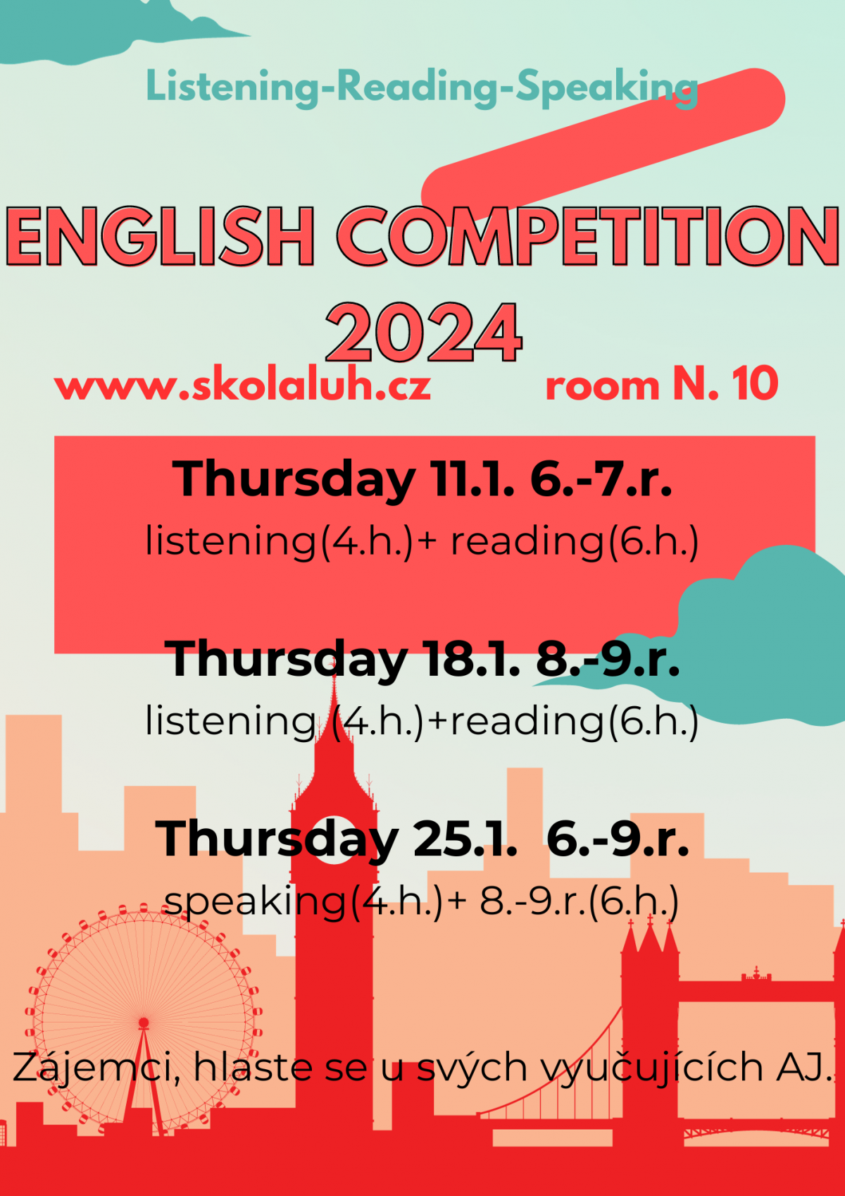 Ostatní nezoufejte, v polovině června t. r. vás čeká naše opět školní soutěž v novém formátu pro druhý stupeň ZŠ „Listener“.