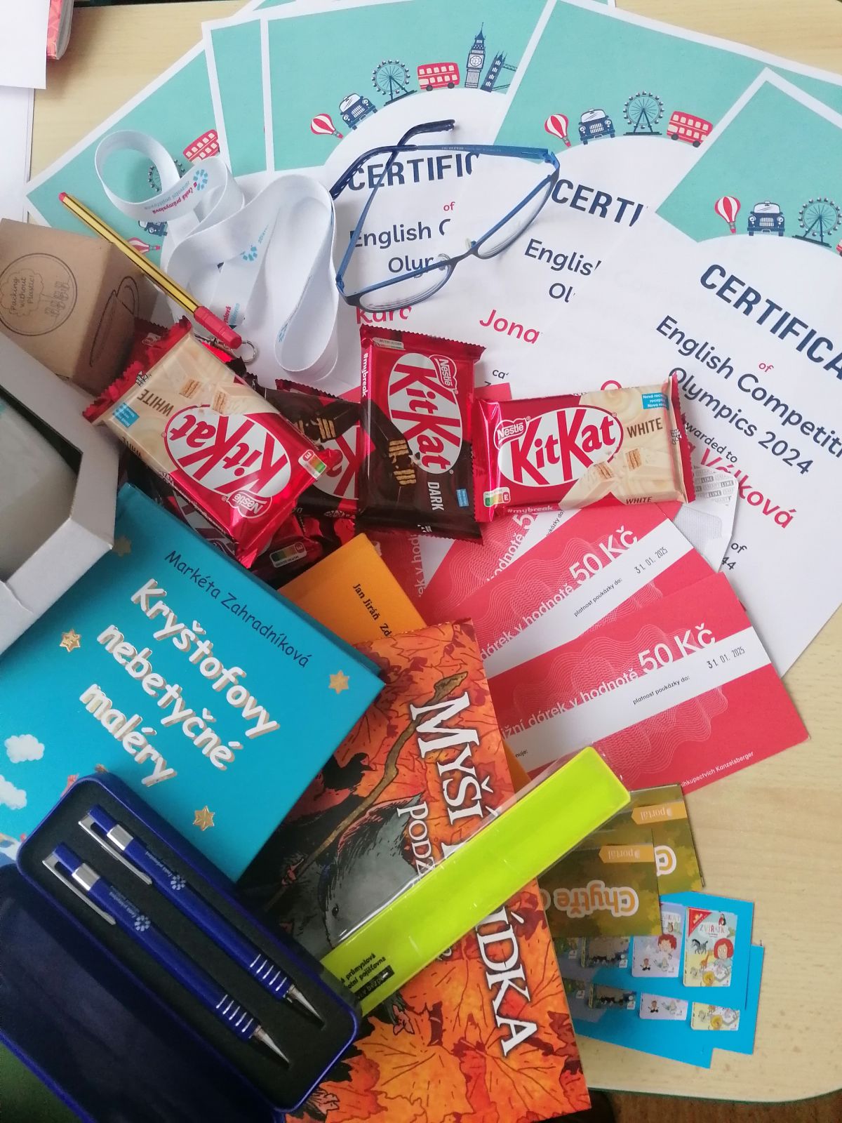Všichni výše uvedení účastníci obdrželi praktické ceny od školy a vyučující anglického jazyka.