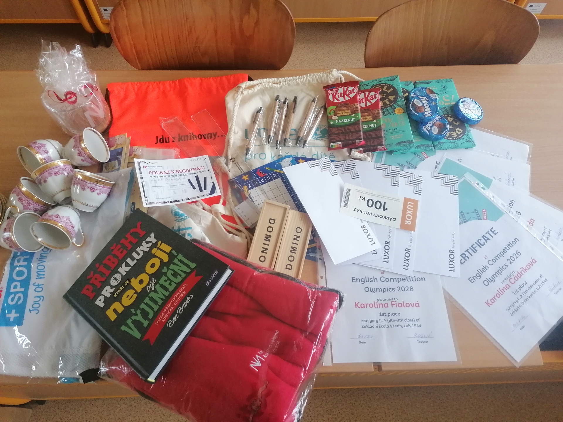 Všichni výše uvedení účastníci obdrželi praktické ceny od SRPŠ Základní školy Luh, České průmyslové zdravotní pojišťovny-pobočky Vsetín, Městské knihovny Vsetín a vyučující anglického jazyka.