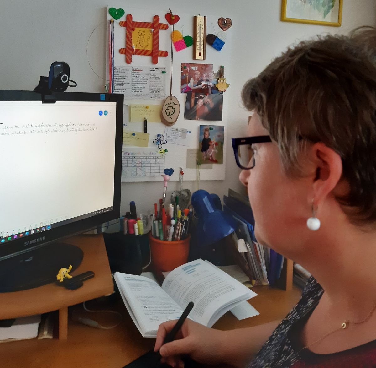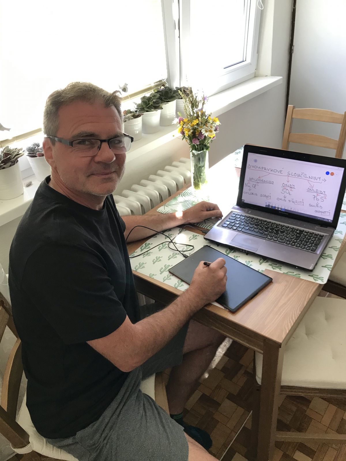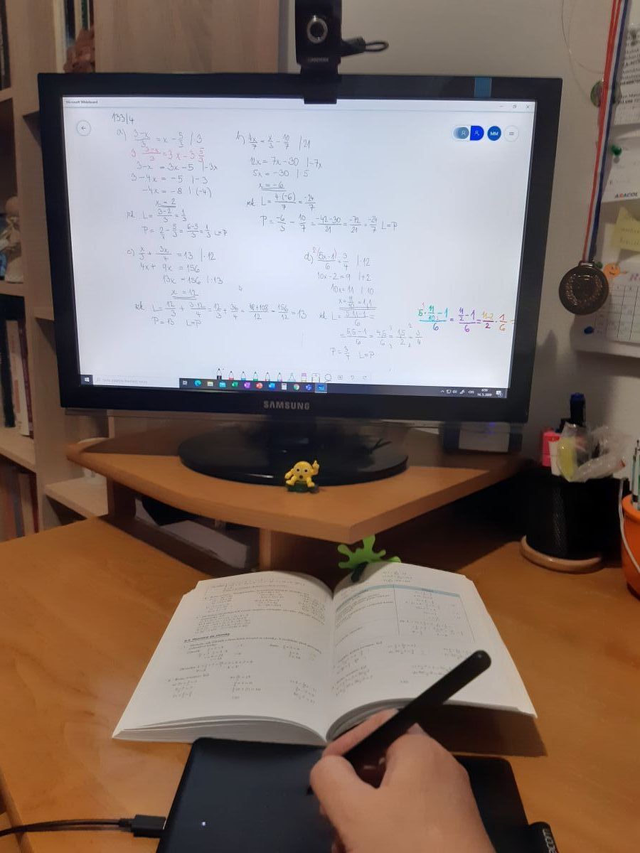 Věděli jsme, že vyučování může pokračovat online díky Office365, který na škole používáme třetím rokem. Takže hned druhý týden po uzavření škol jsme se začali školit v Teamsech, abychom mohli s žáky navázat spojení. Nebylo to jednoduché. Řešili jsme technické problémy jak na straně učitelů, tak i na straně žáků. Zorientovat se v systému ze dne na den nebylo vůbec snadné. Nastavit rozvrhy hodin, abychom se nepřekrývali, sdílet materiály, hledat odkazy na výukové materiály, vymyslet co nejlepší způsob posílání domácích prací ke kontrole, psaní testů, do toho pravidelné online porady a sdílení zkušeností, komunikace s rodiči, žáky atd. Každý učitel hledal ten nejlepší způsob, který by vyhovoval jemu i žákům. Co se hodně osvědčilo, byly videokonference. Škola pořídila přírodovědným předmětům grafické tablety pro zlepšení psaní na online tabuli.