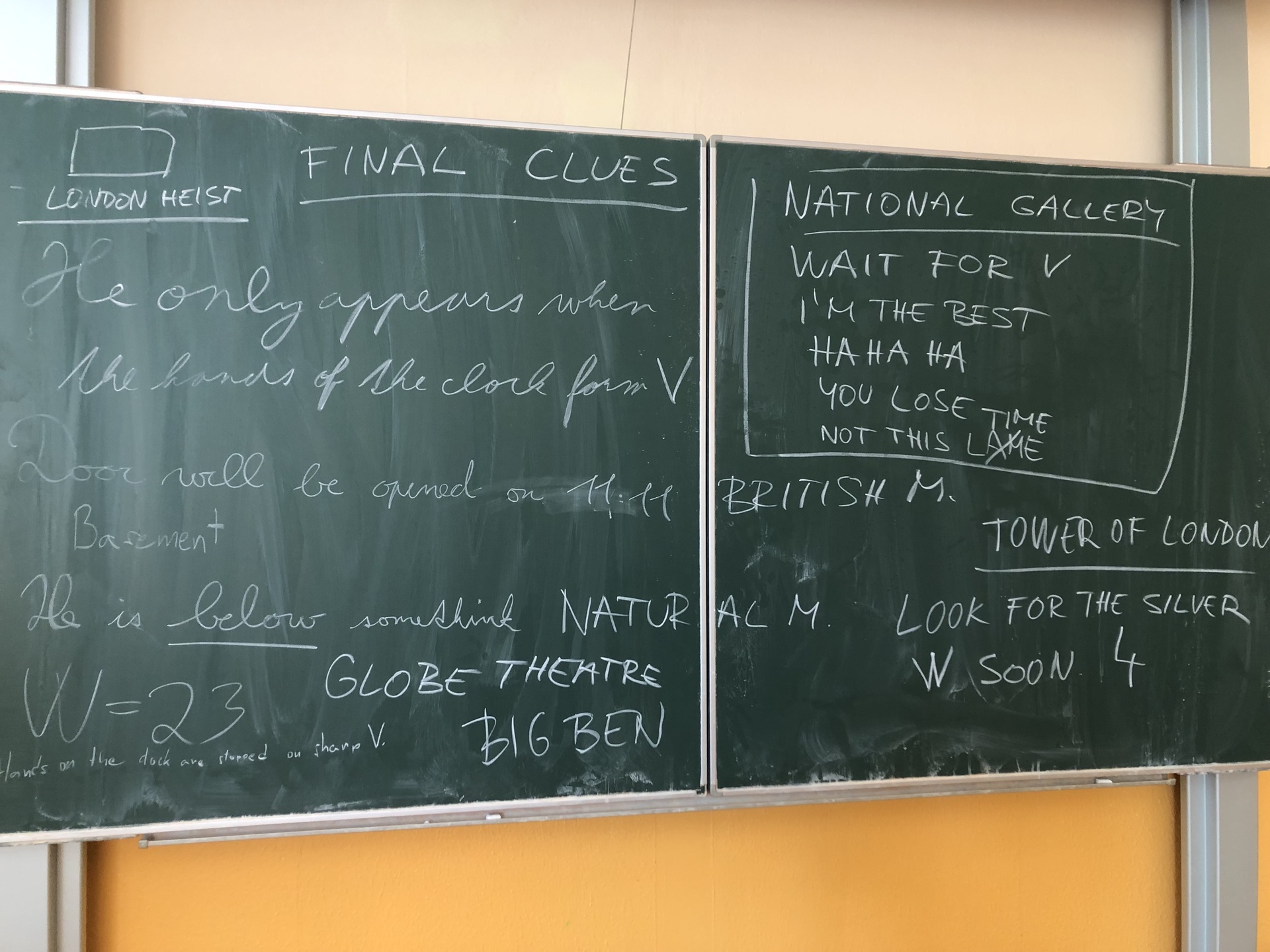 Šesťáci dostávali video instrukce a pokyny přímo z Londýna a během 2 dnů zajistili stopy a důkazy na všech místech. Zloděj nechával důmyslné šifry, tajuplné vzkazy i zakódované zámky. Byli jsme mu ale v patách a v přesný čas 11:11 jsme odhalili jeho úkryt. Bohužel stihnul prostoupit časem a zmizel. Londýn si ale oddechnul.