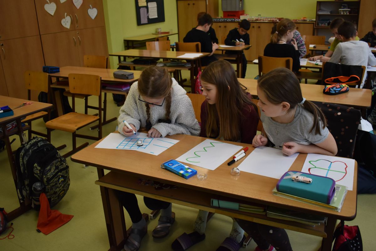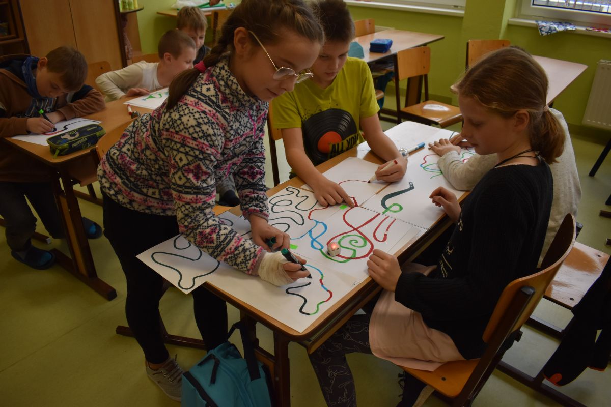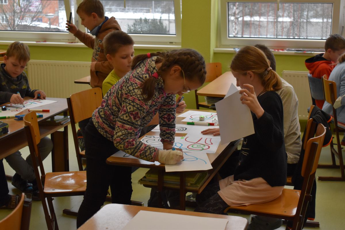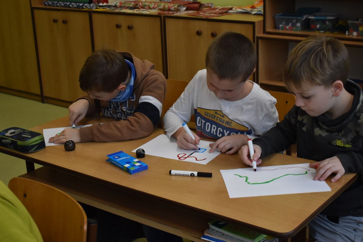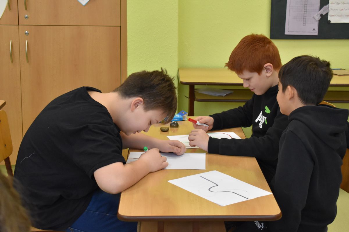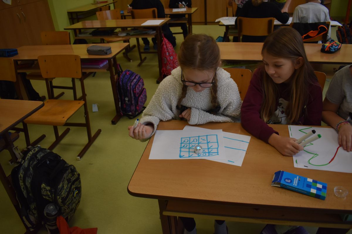 Žáci 4.B se seznamovali s malými robůtky Ozoboty. Rozdělili se do skupinek a kreslili fixem různé dráhy a sledovali chování Ozobota.