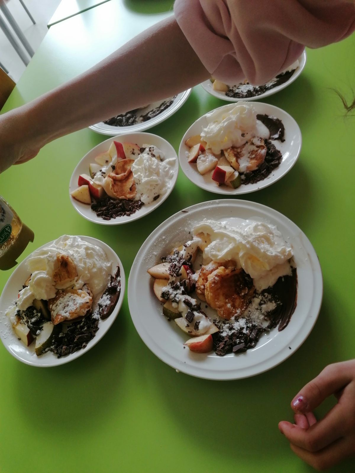 Sami si obstarali všechny potřebné suroviny a výroba palačinek, lívanců již nebyl problém. Je chvályhodné, že se žáci podělili i s vyučujícími.