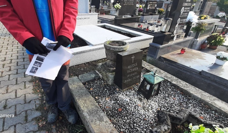 Cestou jsme neplánovaně narazili i na další významná místa, jako například během procházky hřbitovem hrob učitele a spisovatele Matouše Václavka.