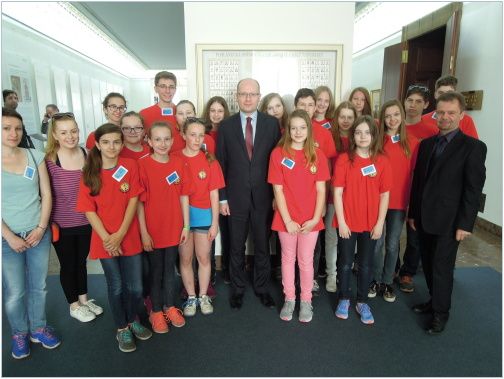 V pátek jsme se už po čtvrté hodině ráno sešli na vlakovém nádraží a vyrazili směr Praha, abychom už v deset dopoledne mohli nedočkavě vstoupit do budov Poslanecké sněmovny. Na místě panoval čilý ruch. Poslanci v oblecích diskutovali a spěchali z místa na místo. Měli jsme štěstí, že našim průvodcem byl ředitel naší školy, poslanec Mgr. Petr Kořenek. Popsal nám průběh běžného jednání a život ve sněmovních budovách. Měli jsme možnost nahlédnout do místností, kde se běžný návštěvník jen tak nedostane. Potkali jsme se i s premiérem Bohuslavem Sobotkou, se kterým se členové našeho školního parlametnu vyfotili. Pak jsme pozorovali jednání Sněmovny z galerie sálu.