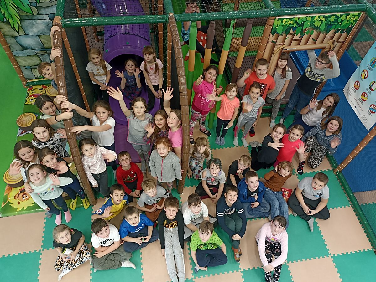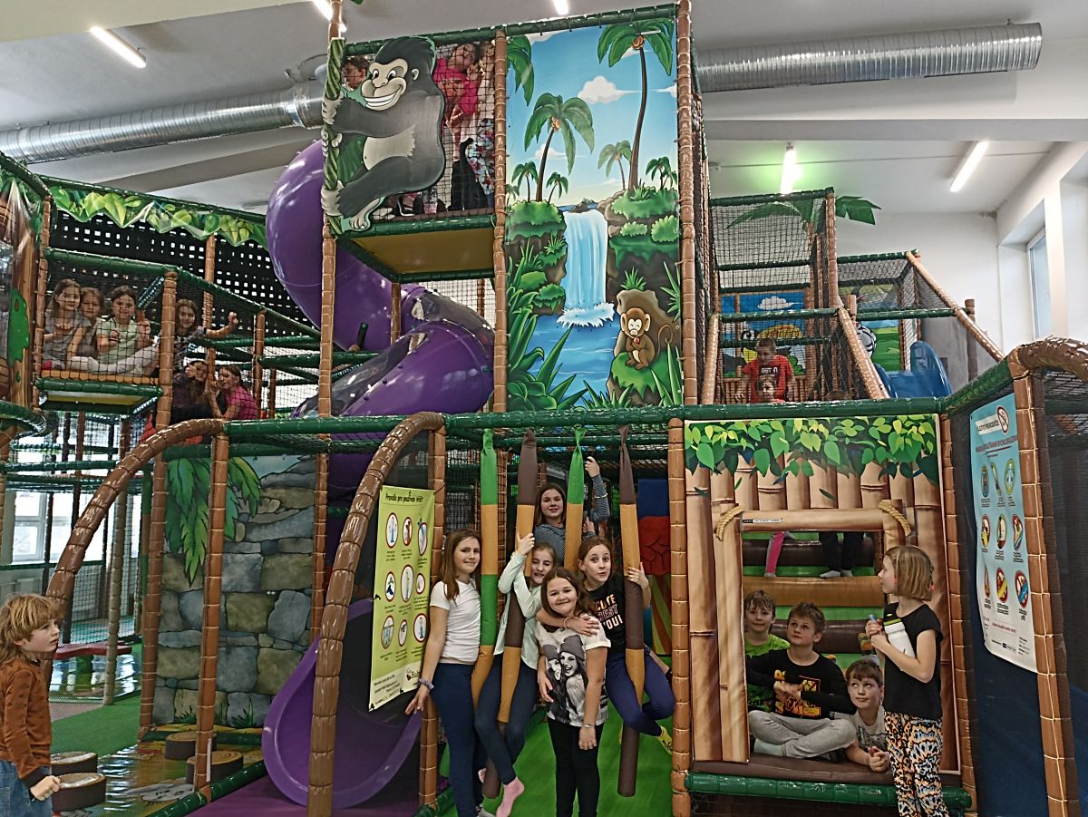 Pátek 12.1. se děti z oddělení Soviček I, II a Sluníček vydaly za zábavou do džungle. Křik, dupot, smích, radost se rozléhal celou budovou. Děti si pochutnaly jak na dobré pizze či párku v rohlíku, tak i na sladkostech. Všechny děti si to náramně užily a už se těší na další návštěvu. Vychovatelky Soviček a Sluníček