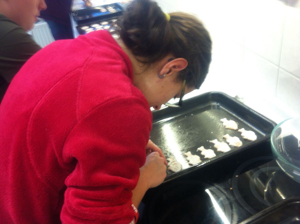 S velkým balíčkem perníkového těsta, nadšením pro práci a s velkou chutí jsme se přesunuli do cvičné kuchyňky, kde jsme společně pekli voňavé perníčky. Během práce jsme si hezky popovídali a zavzpomínali na předešlé vánoční svátky a zážitky z nich. Práce nám šla skvěle od ruky a výsledek stál opravdu za to.