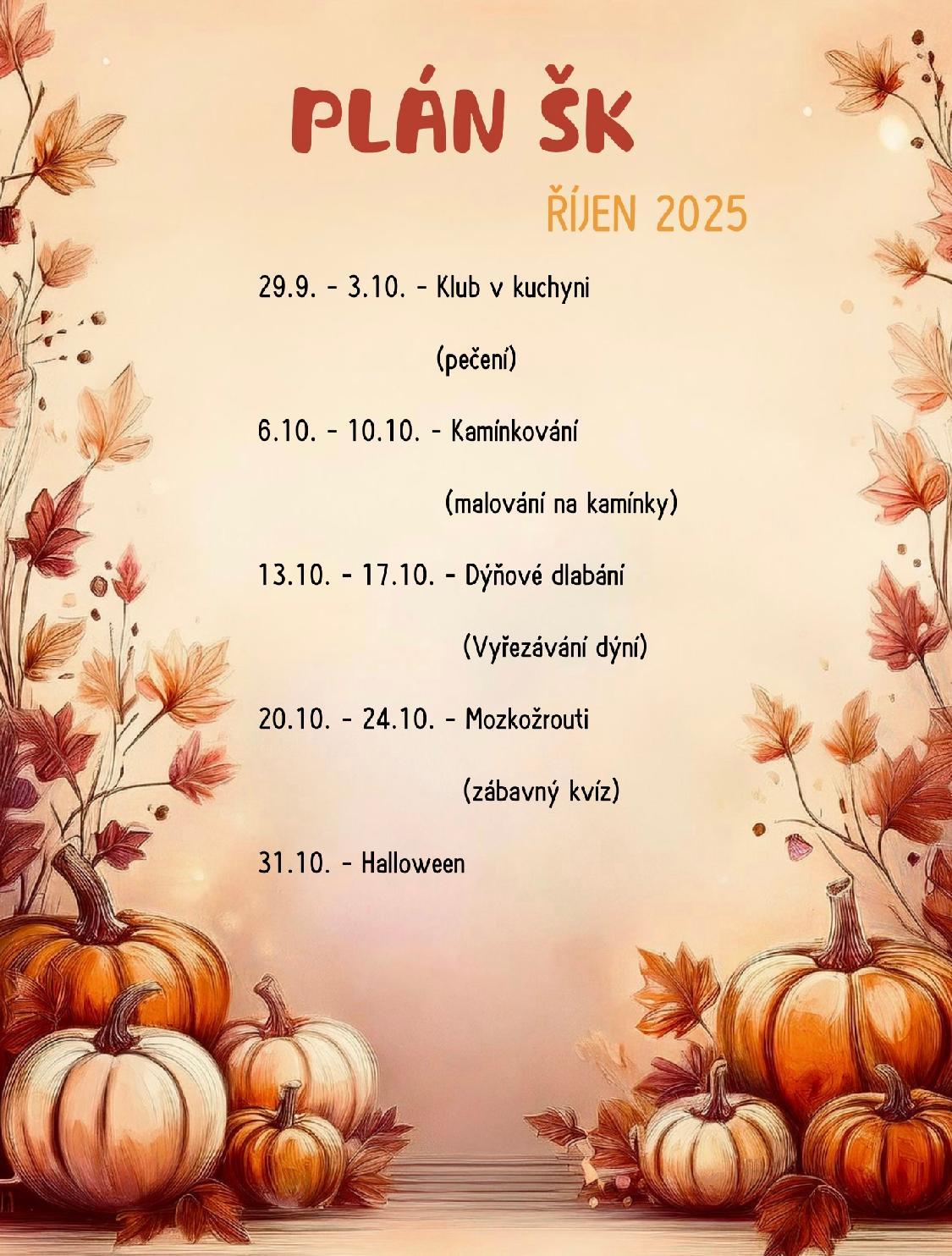 Plán ŠK na měsíc říjen