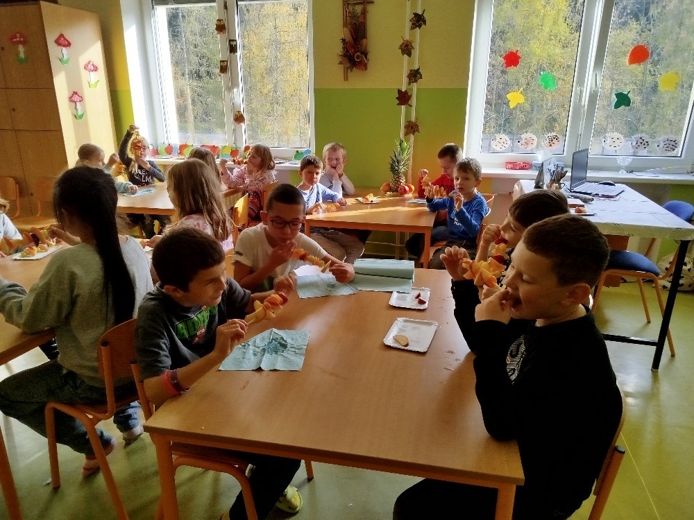 Podzim je barevné období, který nám nabídl tvořit rozmanité výrobky a také možnost pobytu v přírodě a na hřišti. Během podzimních měsíců děti rády přivítaly i návštěvy v solné jeskyni, kině, knihovně, Zrnku a také zážitkový program s ochutnávkou ovoce. Pomalu nastupuje paní Zima a již teď se těšíme, co nám přinese. Vychovatelka Naďa Dorňáková a žáci 1.C + 2.B