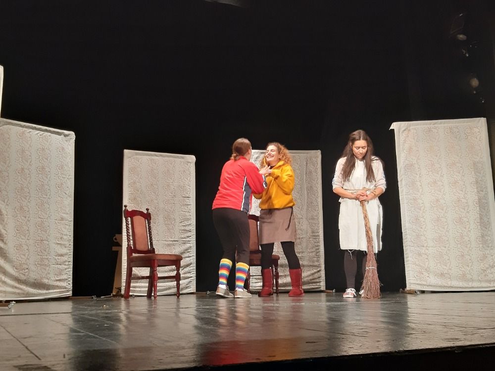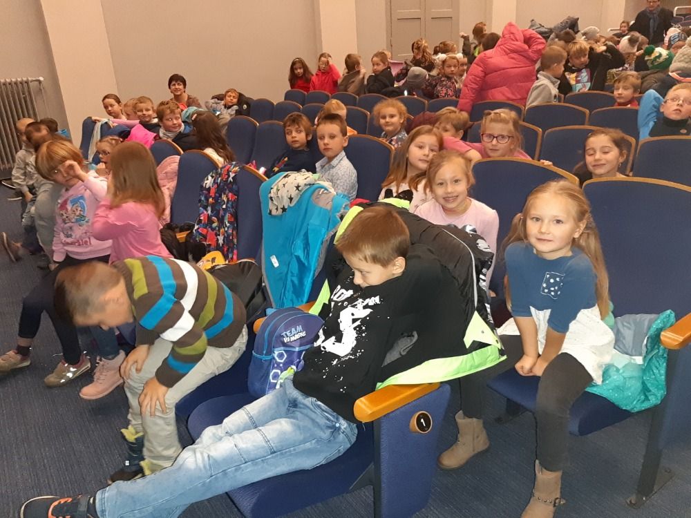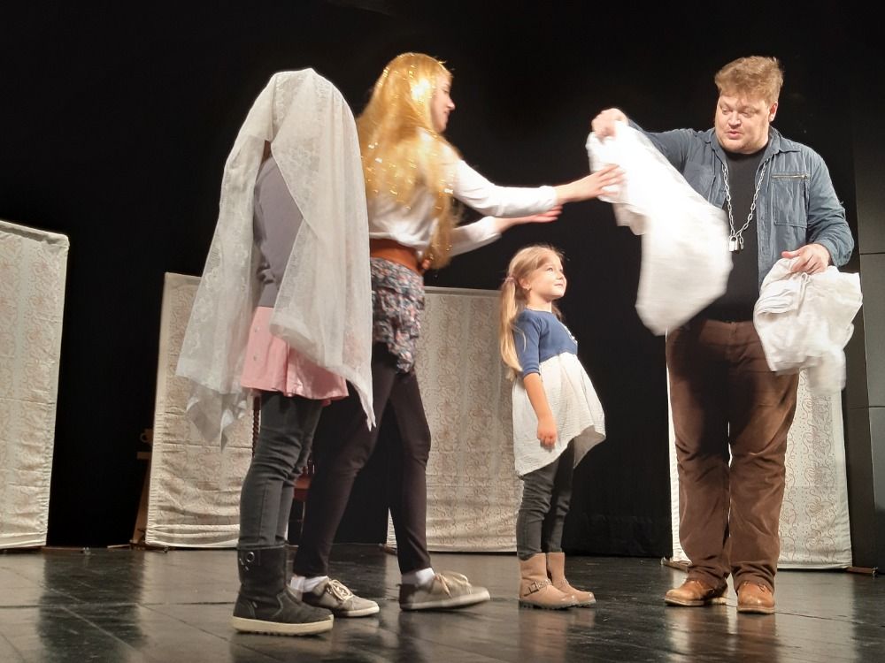 Ale to hlavní překvapení nás teprve čekalo... U pohádky Zlatovláska, kdy se děj pomalu chýlil ke konci a Jiřík měl vybrat tu správnou Zlatovlásku, vybírali herci do počtu ještě 2 náhradní "zlatovlásky" z hlediště. Poštěstilo se nám a to natolik, že obě princezny byly z naší školy: Ema Řičičářová z 1.B a Ella Surovcová ze 3.B.