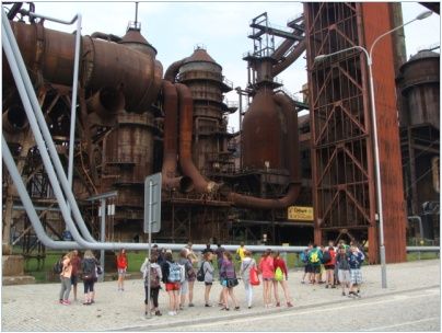 Mohli jsme spatřit či dokonce prolézt obrovské železné konstrukce bývalé výrobny železa. Každá třída měla samostatnou prohlídku Vysoké pece č. 1 s nástavbou. Nově otevřeným výtahem jsme se dostali až na vrchol konstrukcí, kde jsme měli z výšky 80 m krásný výhled na celou Ostravu.