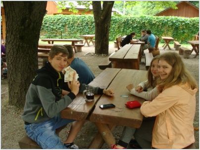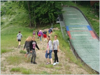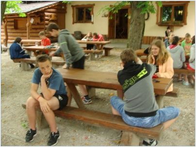 Po krátkém nakupování jsme opět nasedli do autobusu a vyrazili směr autokemp Frenštát p/R. Když jsme dorazili, museli jsme delší dobu čekat na klíčky od chatek, pak rychle vběhli dovnitř, znavení a hladoví – uplatnili naše kuchařské umění. Druhý den, vyspaní a plní energie, jsme kolem desáté hodiny ranní opustili kemp a vydali se do dvacet kroků vzdálené restaurace, kde již na nás čekala čerstvě upečená pizza. S plnými břichy jsme svižnou chůzí dorazili na náměstí Frenštátu. Po hodinovém rozchodu jsme jeli do areálu skokanských můstků Jiřího Rašky, svižně vyšplhali na menší můstek a naposledy nasedli do autobusu a vydali se domů. K zadnímu vchodu školy jsme dojeli okolo půl třetí, unavení, avšak báječně naladění z našeho skvělého výletu.