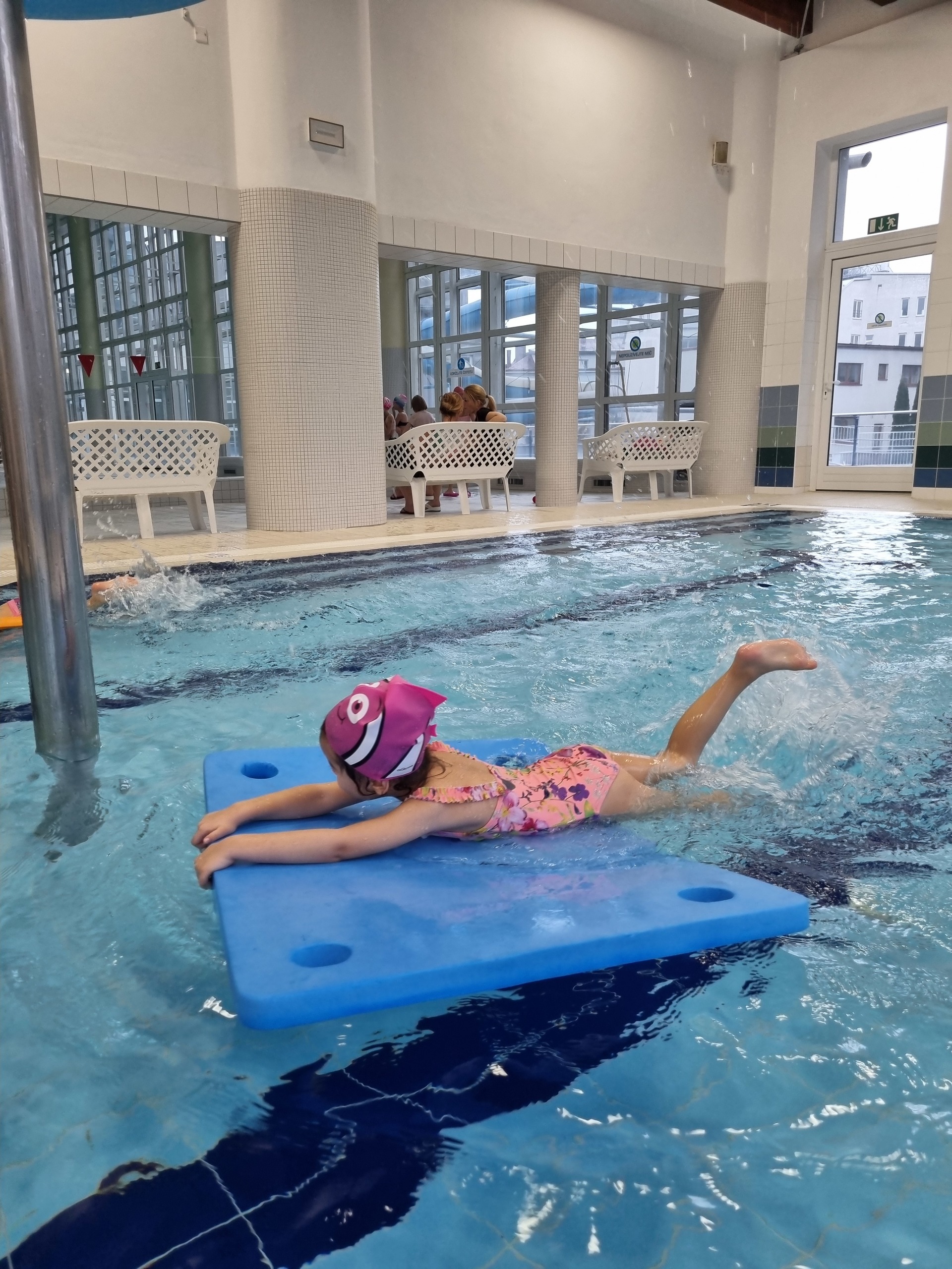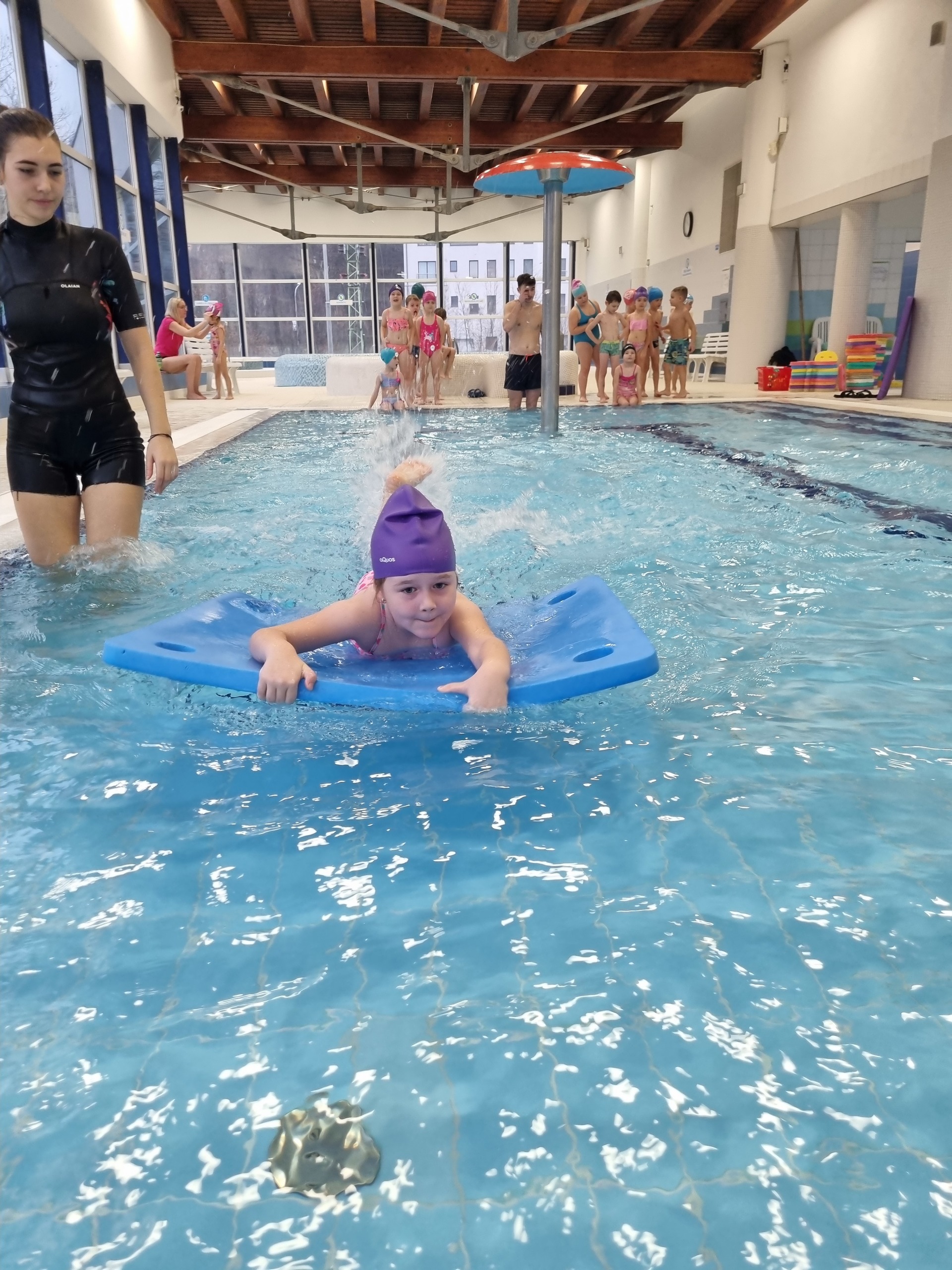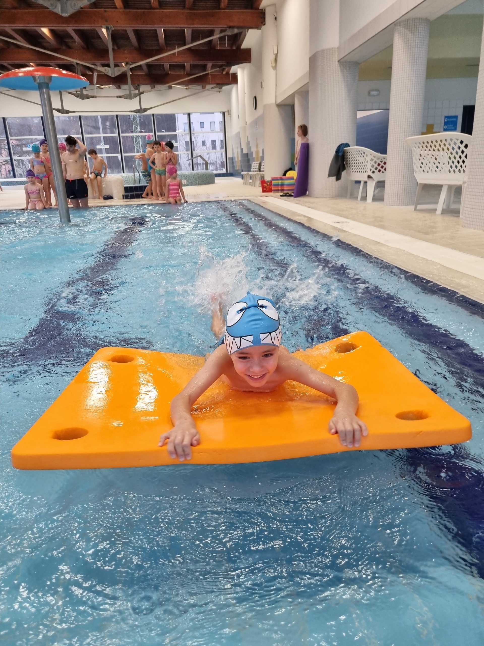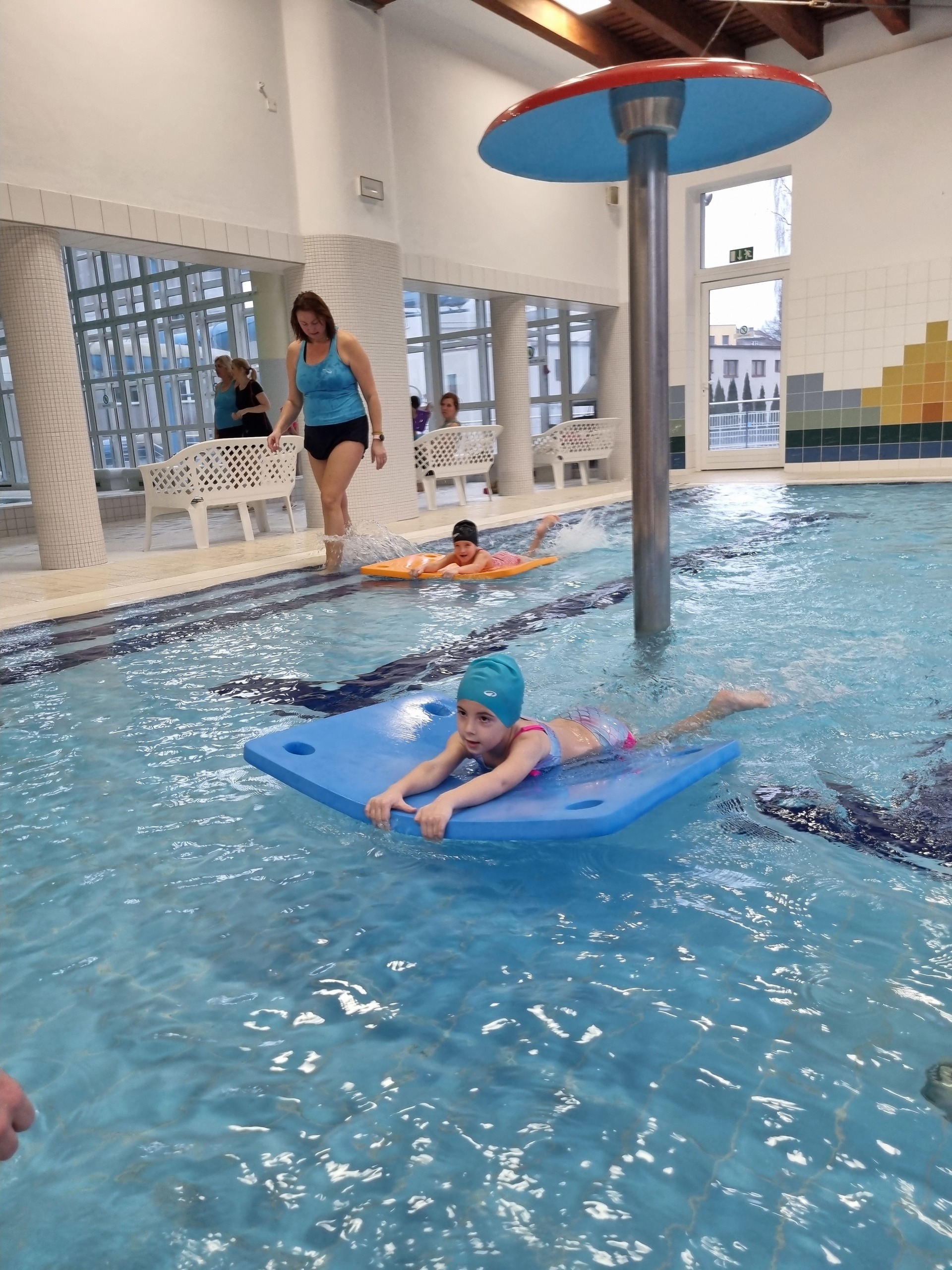 Tak nám to uteklo jako voda. V pátek jsme byli naposledy plavat a děti si to náramně užily. Plavecký kurz zakončily napínavé závody v plavání na podložce, při nichž děti poměřily své síly. Po vydařených závodech následovala tolik očekávaná jízda na tobogánu, a i když zpočátku měly některé děti strach, nakonec jej překonaly a jízdu si užily i několikrát za sebou. Za úspěšné absolvování kurzu si všichni odnesli „mokré vysvědčení“.