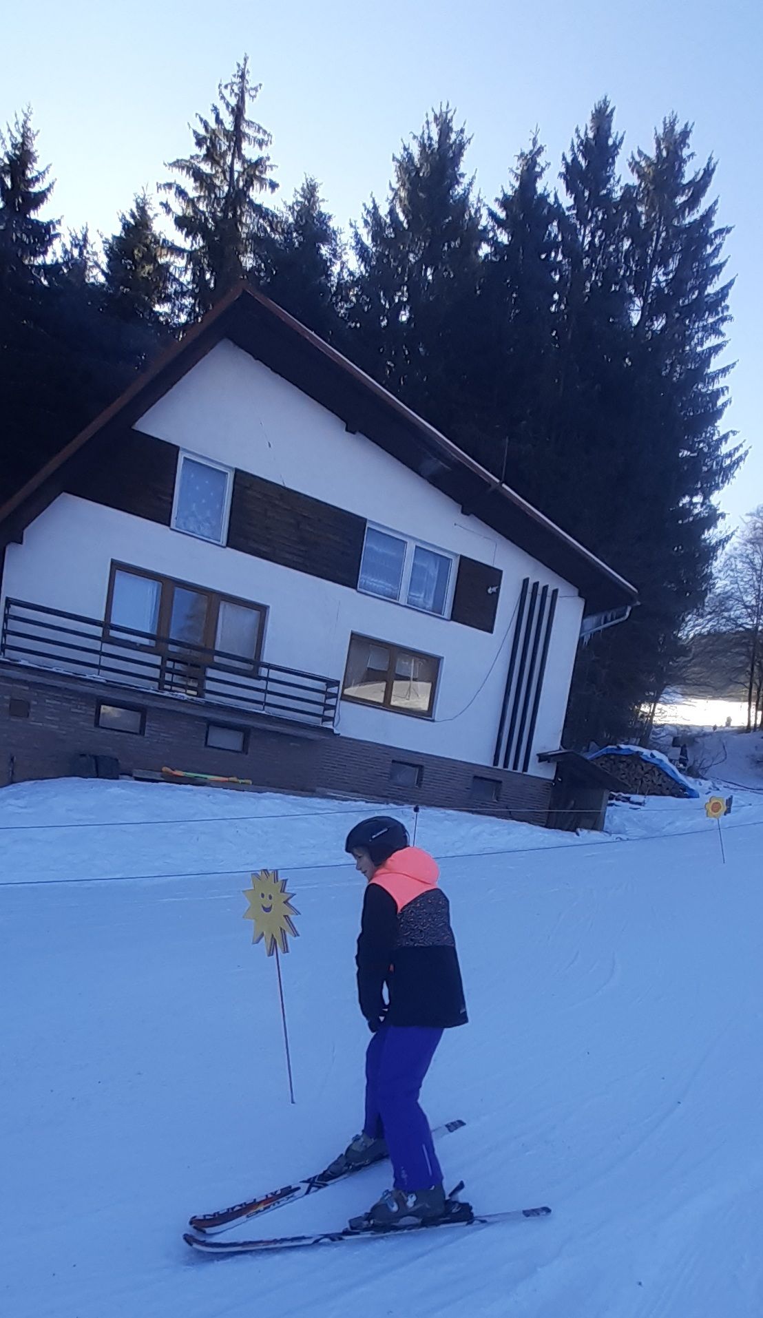 V těchto dnech se naši sedmáci zdokonalují v lyžařských dovednostech. Sněhové podmínky jsou výborné. I když je mráz, žáci si to náramně užívají.