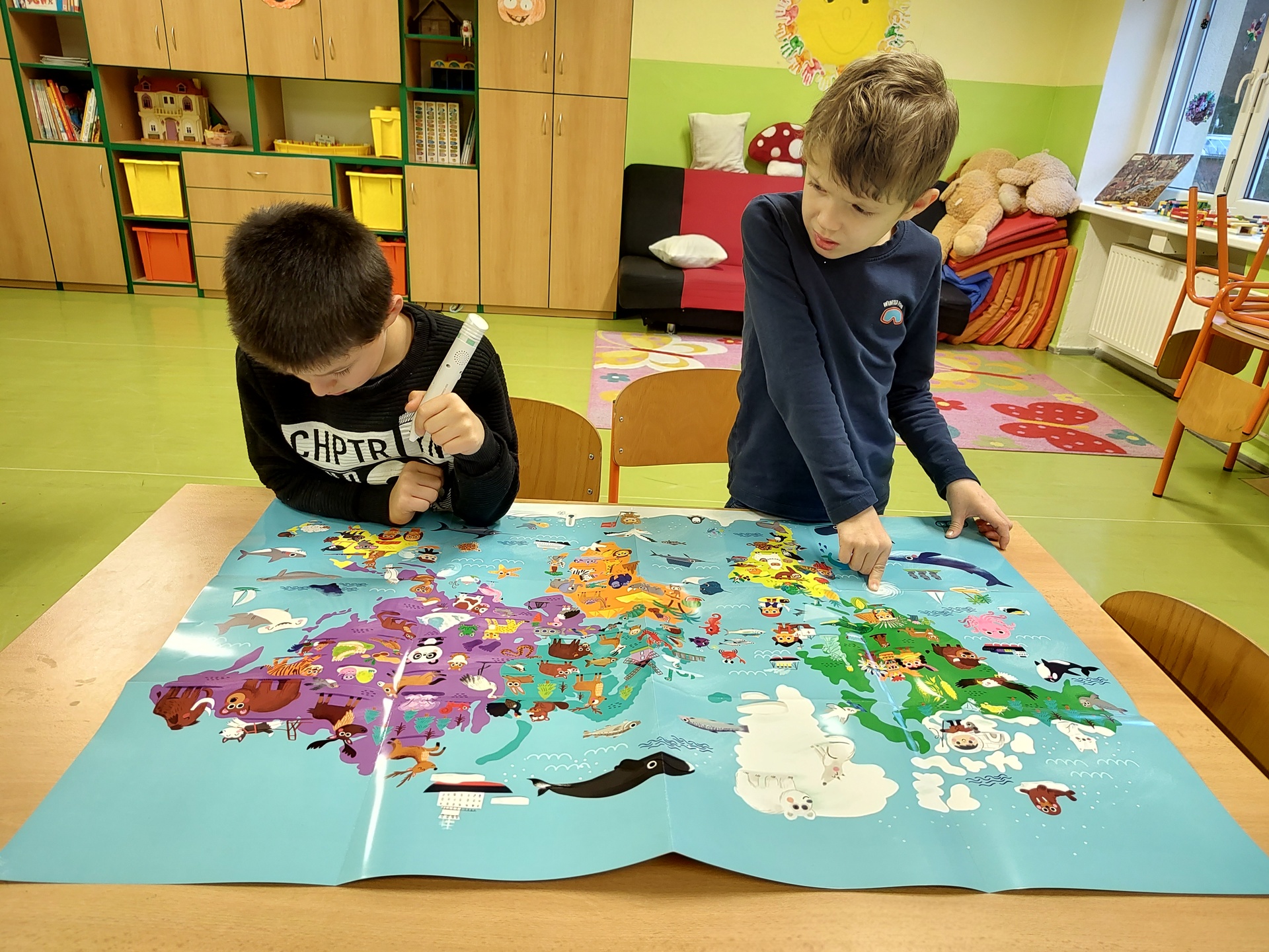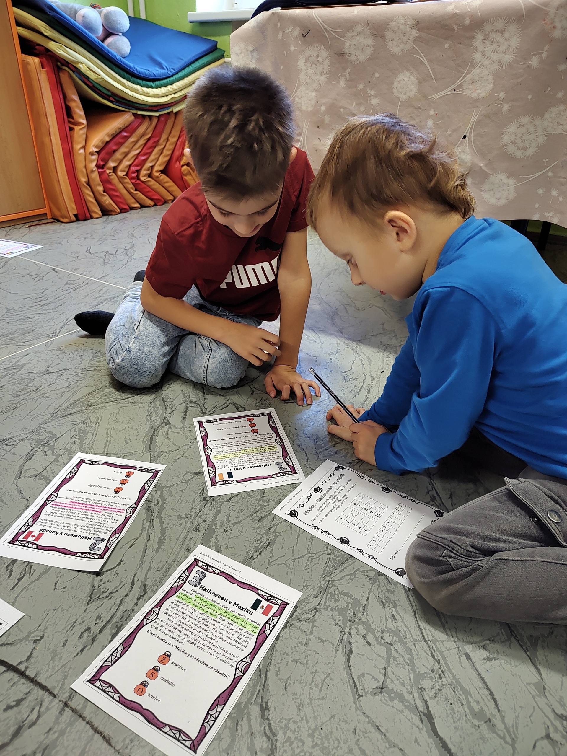 Děti z kroužku Poznáváme svět se každý čtvrtek stávají malými cestovateli a společně objevují zajímavá místa, zvyky i kulturu různých zemí světa. Naše dobrodružství začalo tvorbou vlastních cestovních lapbooků a pasů, do kterých si všechny informace pečlivě zapisujeme. Během našich výprav se seznamujeme s vlajkami, hlavními městy nebo se učíme orientovat v mapách. Nechyběly ani oslavy Halloweenu, které jsme si užili na halloweenské stezce a při tradiční hře lovení jablek. Těšíme se na další země, které společně navštívíme!
