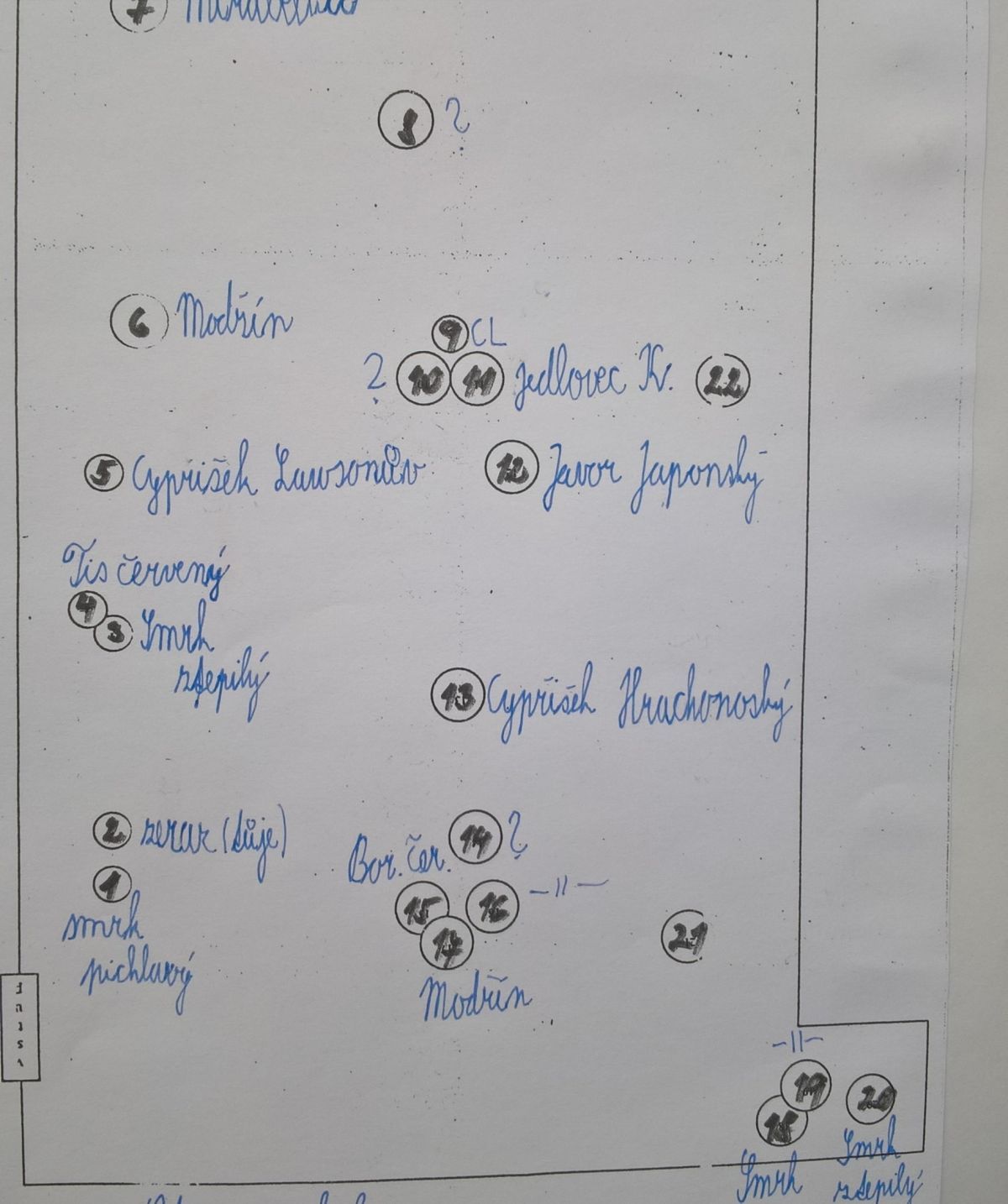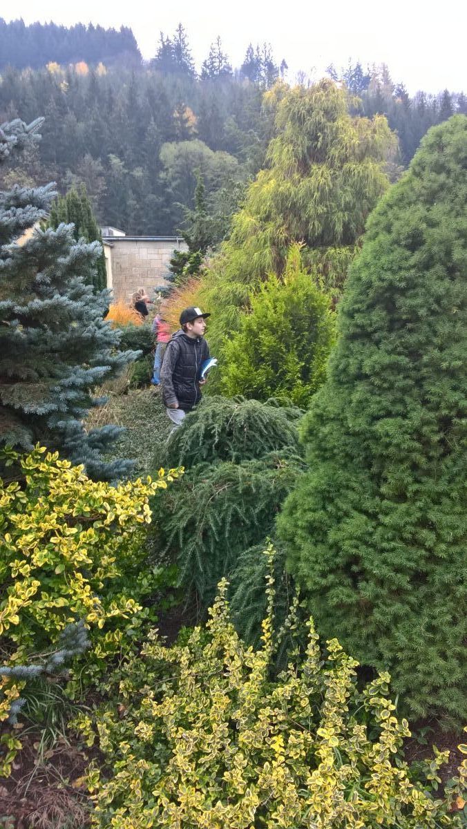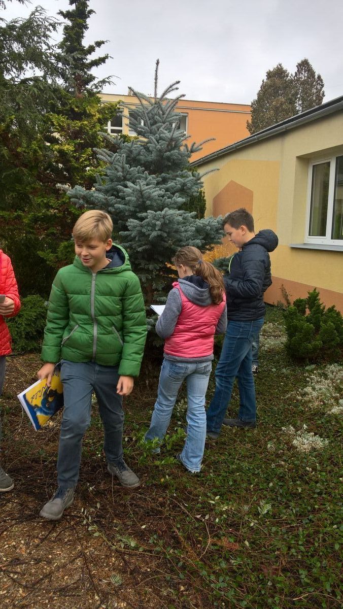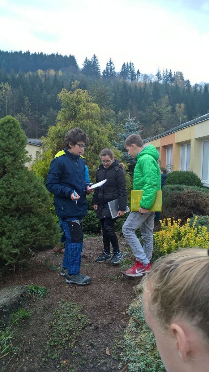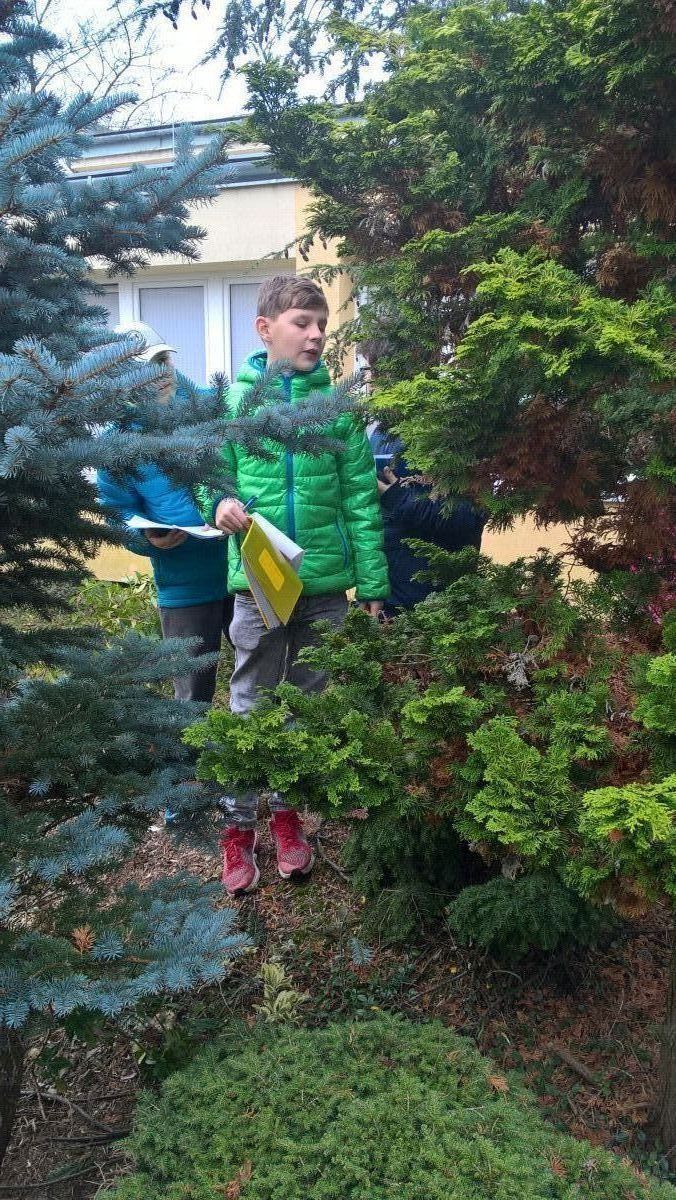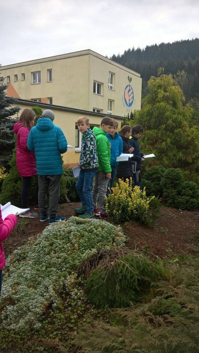 S nadšením jsme vyrazili poznávat nové rostliny a opakovat dřeviny nám již známé. Podařilo se nám určit celkem 20 druhů, např. smrk ztepilý, tis červený, javor japonský, cypřišek Lawsonův, smrk bílý a další nepůvodní dřeviny, které k nám byly dovezeny např. ze Severní Ameriky, Japonska, Kanady.