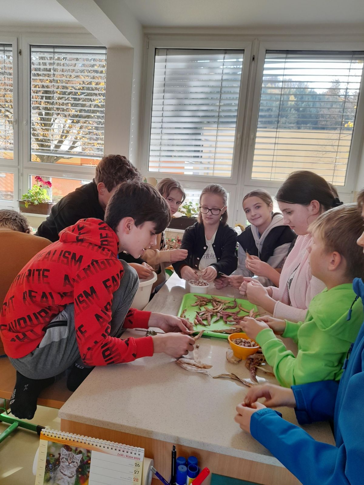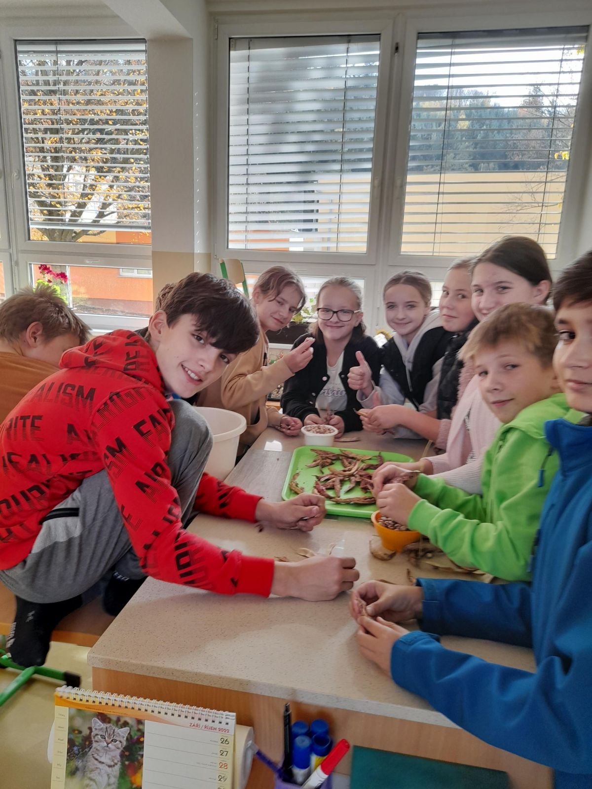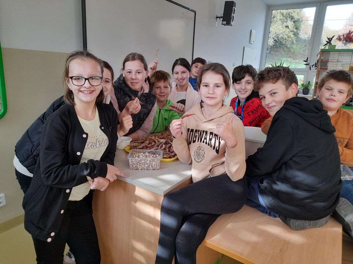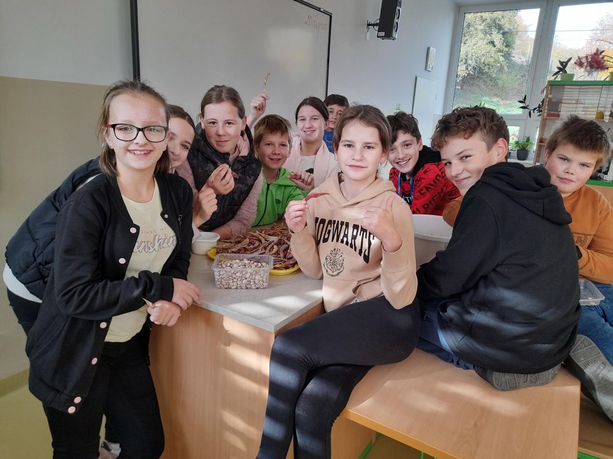 Pracovní činnosti v pěstitelských pracích naše šesťáky hodně bavily...Zaseli, vypěstovali i s nadšením sklízeli luskoviny.