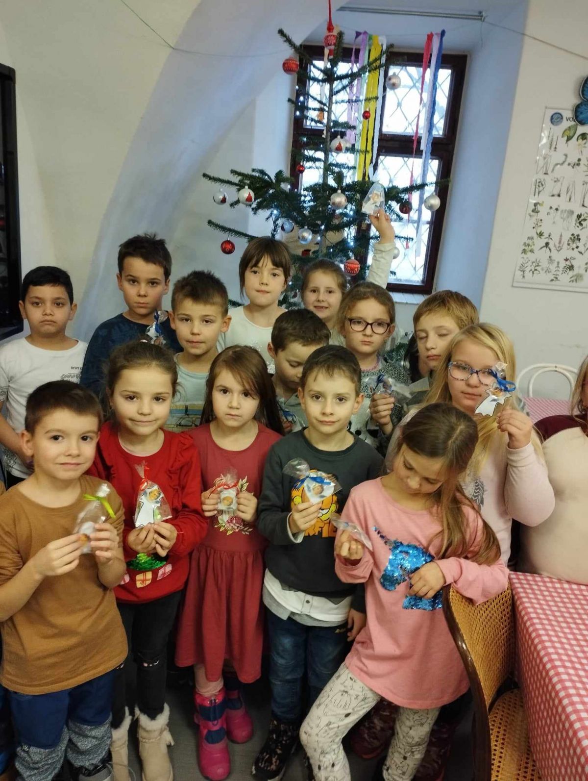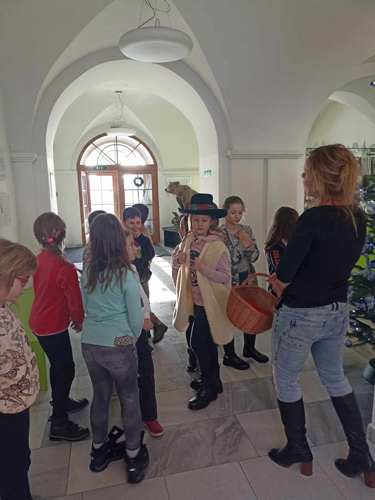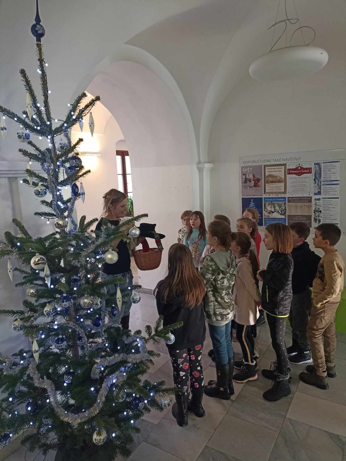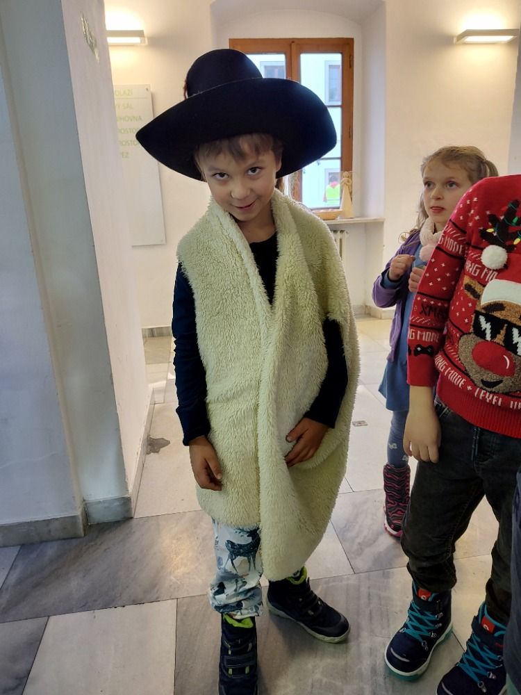 Na zámku nás přivítala paní průvodkyně, která hned ze startu dávala dětem všetečné otázky. Kdo odpovídal jako první správně, stal se bačou a zároveň vedoucím celé skupiny. Skupinka dětí poté vyrazila po stopách oveček, až narazila na vánoční stromeček, u kterého jsme se všichni posadili a paní průvodkyně začala své vyprávění.