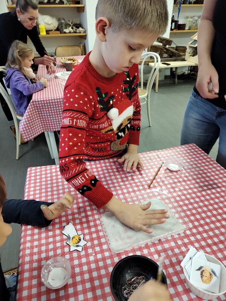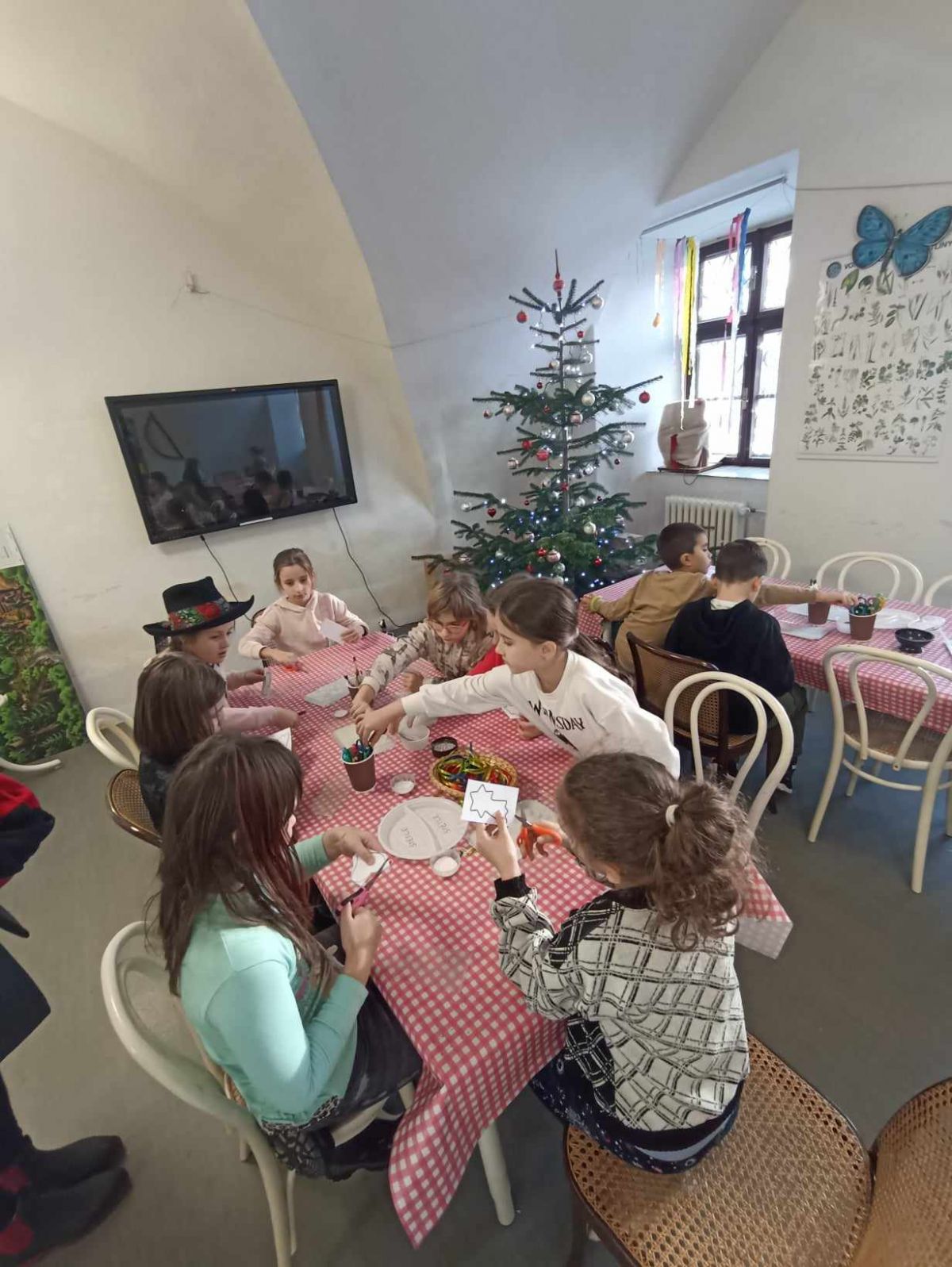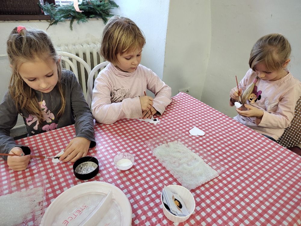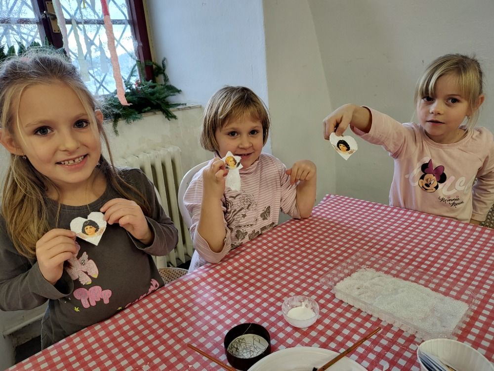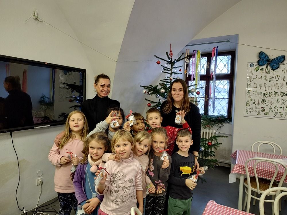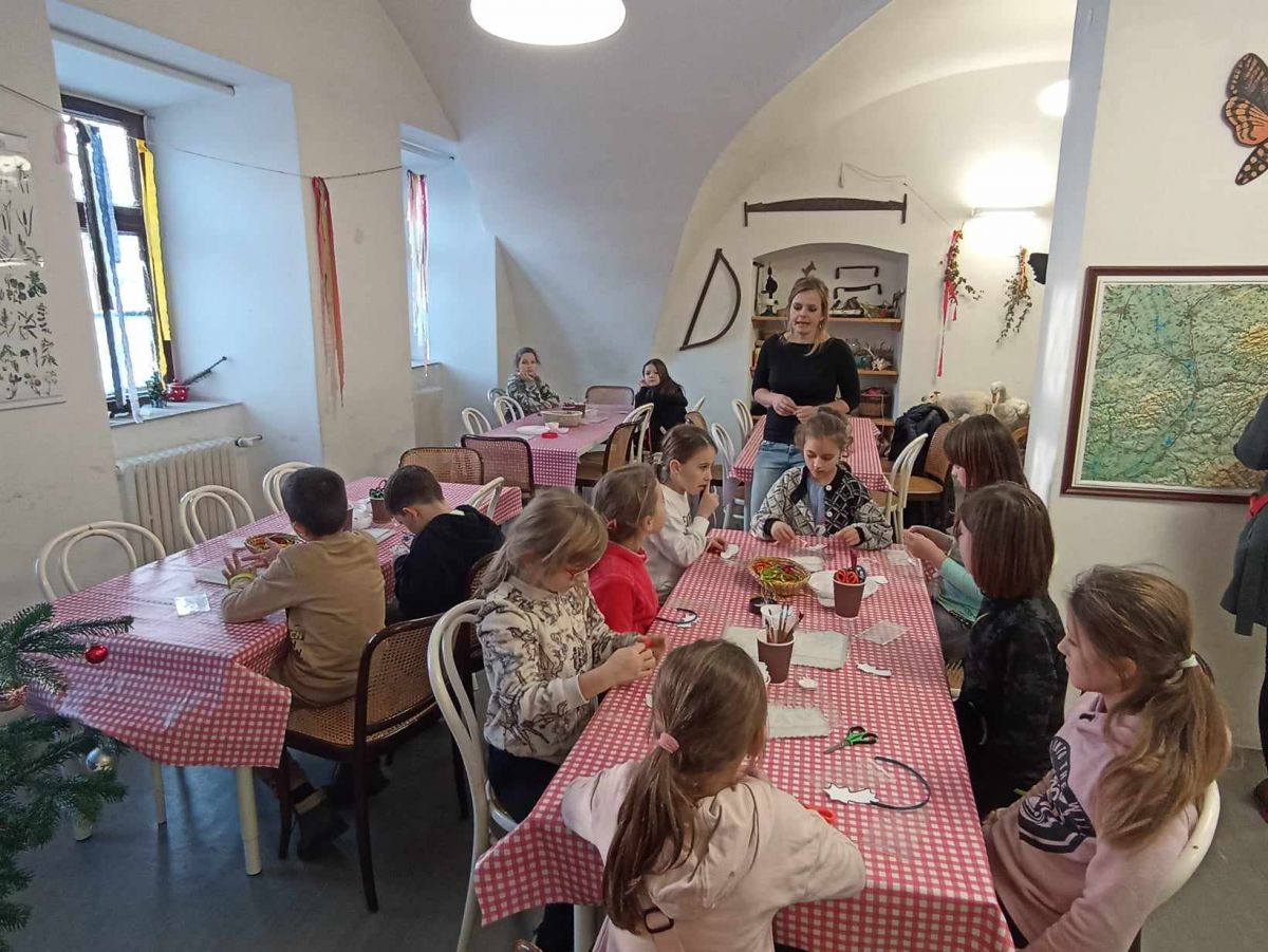 Ovšem u stromečku naše putování neskončilo. Všichni jsme se přemístili do tvořivé dílničky, kde nás paní průvodkyně naučila vyrábět ozdoby podobné těm, které při dlouhých zimních večerech vyráběli naši předci.