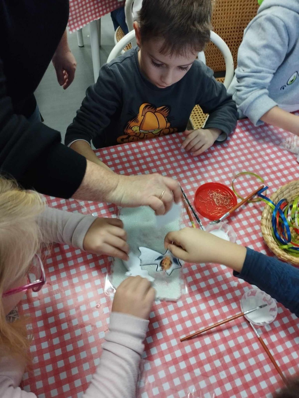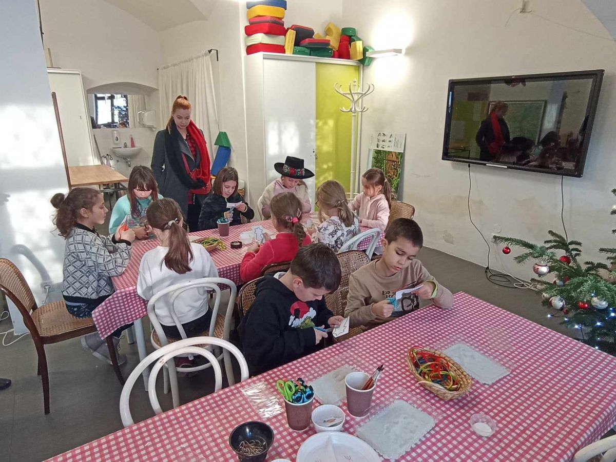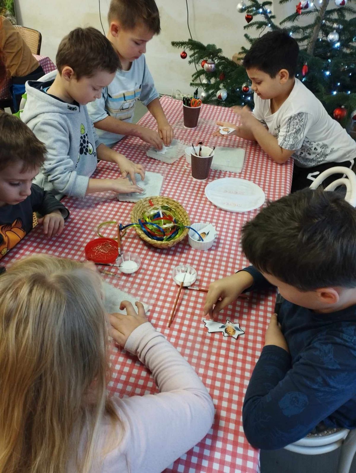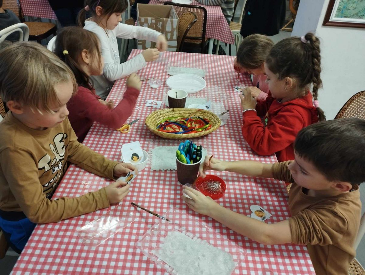 Ovšem u stromečku naše putování neskončilo. Všichni jsme se přemístili do tvořivé dílničky, kde nás paní průvodkyně naučila vyrábět ozdoby podobné těm, které při dlouhých zimních večerech vyráběli naši předci.