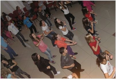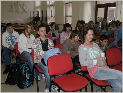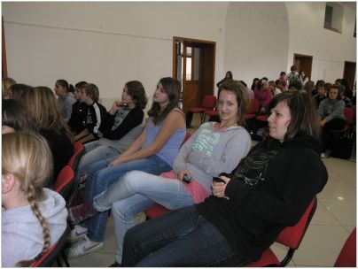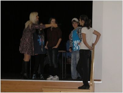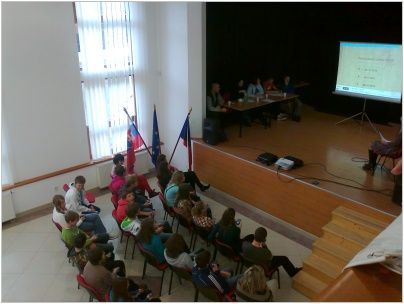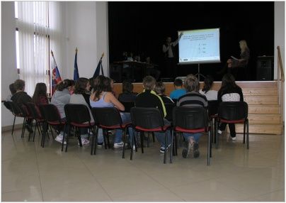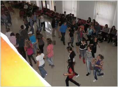 Po příjezdu byl pro účastníky ze tří škol připraven test, týkající se otázek z historie a geologie Vsetína a obce Pruské, dále z dějin obou zemí a také dějin Evropské unie. Děti se s nástrahami testu vypořádaly velmi dobře, o čemž svědčí 3. místo Aničky Jurečkové ze 7.A. Po společném obědě na všechny čekal další úkol, který spočíval ve složení puzzle. Na výsledném obrázku byla společná fotografie všech zúčastněných škol z první aktivity tohoto projektu. Žáci z Luhu poskládali puzzle jako první, a tudíž na ně čekala sladká odměna. Na závěr si každý mohl vyzkoušet a naučit se nové tance, nebo jen tak si posedět a popovídat si s novými známými. Když jsme v podvečer odjížděli, někteří zalitovali, že tento tříletý projekt končí.