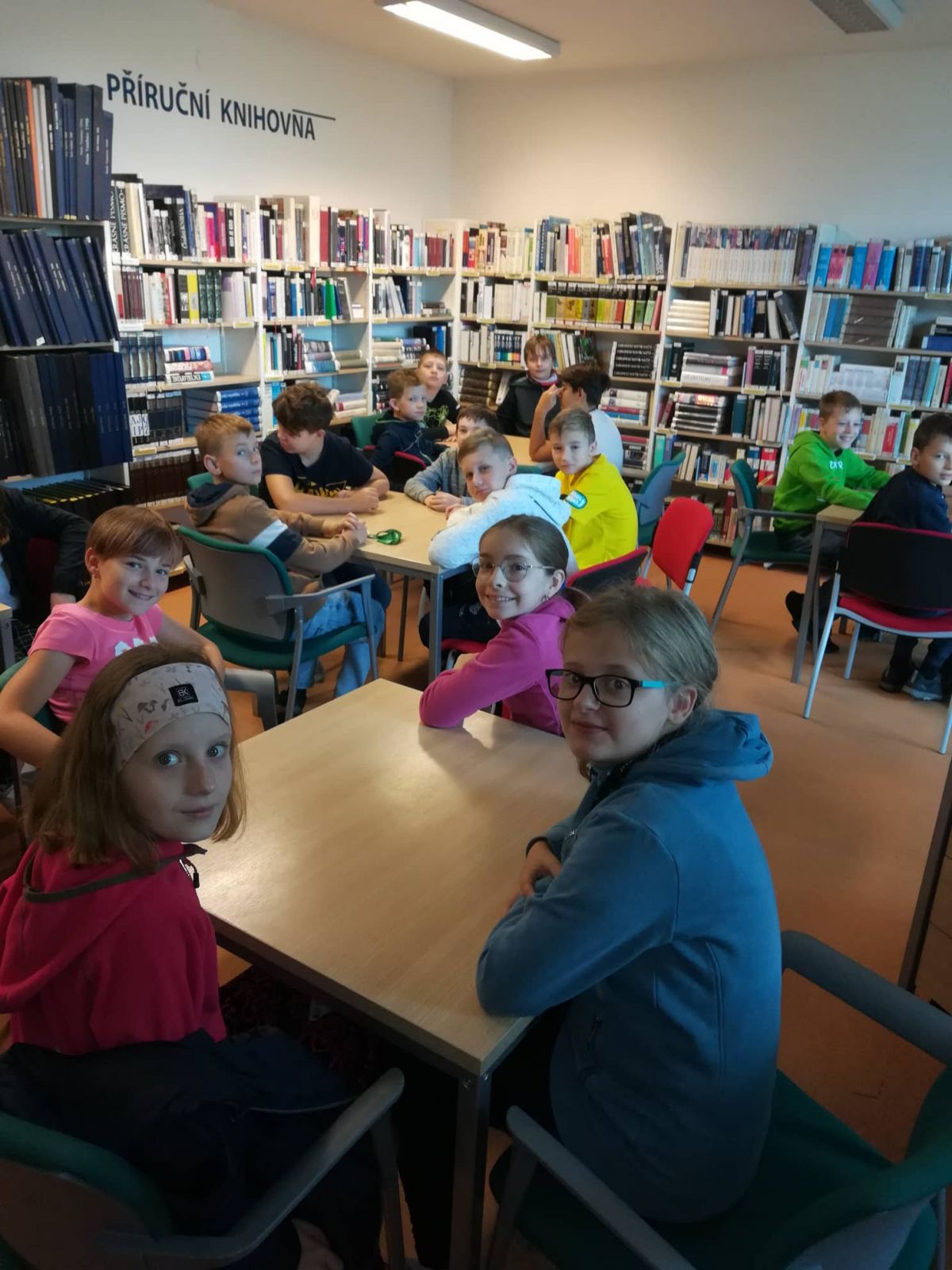 Postupně jsme se seznamovali s jednotlivými, velmi vkusně zařízenými odděleními Městské knihovny. Finální zastávkou byla klidová místnost, v níž nás naše sympatická průvodkyně velmi poutavou formou vlákala do tajů dialektologie. Dnes už všichni víme, že je to věda zabývající se nářečím. A to byla „voda na náš mlýn“! Aktivně jsme diskutovali, polemizovali a zapojovali se do volně vedené přednášky. Pasivita nebyla na místě.
