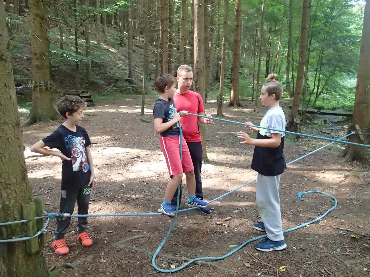 Na táboře je čekala spousta zábavy a dobrodružství. První den si děti vyzkoušely jízdu na lodích na Bečvě. Druhý den navštívily lanové centrum na Hájence v Semetíně. Výšlap na Vartovnu s piknikem pak čekal na táborníky ve středu. Čtvrtek patřil kultuře. Prošli jsme se s princeznou v komnatách a zahradník nám ukázal zákoutí zahrady zámku Kinských v Lešné u Valašského Meziříčí. Celý týden plnily děti úkoly, při nichž získávaly indicie. Díky nim pak v pátek vyluštily šifru, která je přivedla k vytouženému pokladu.