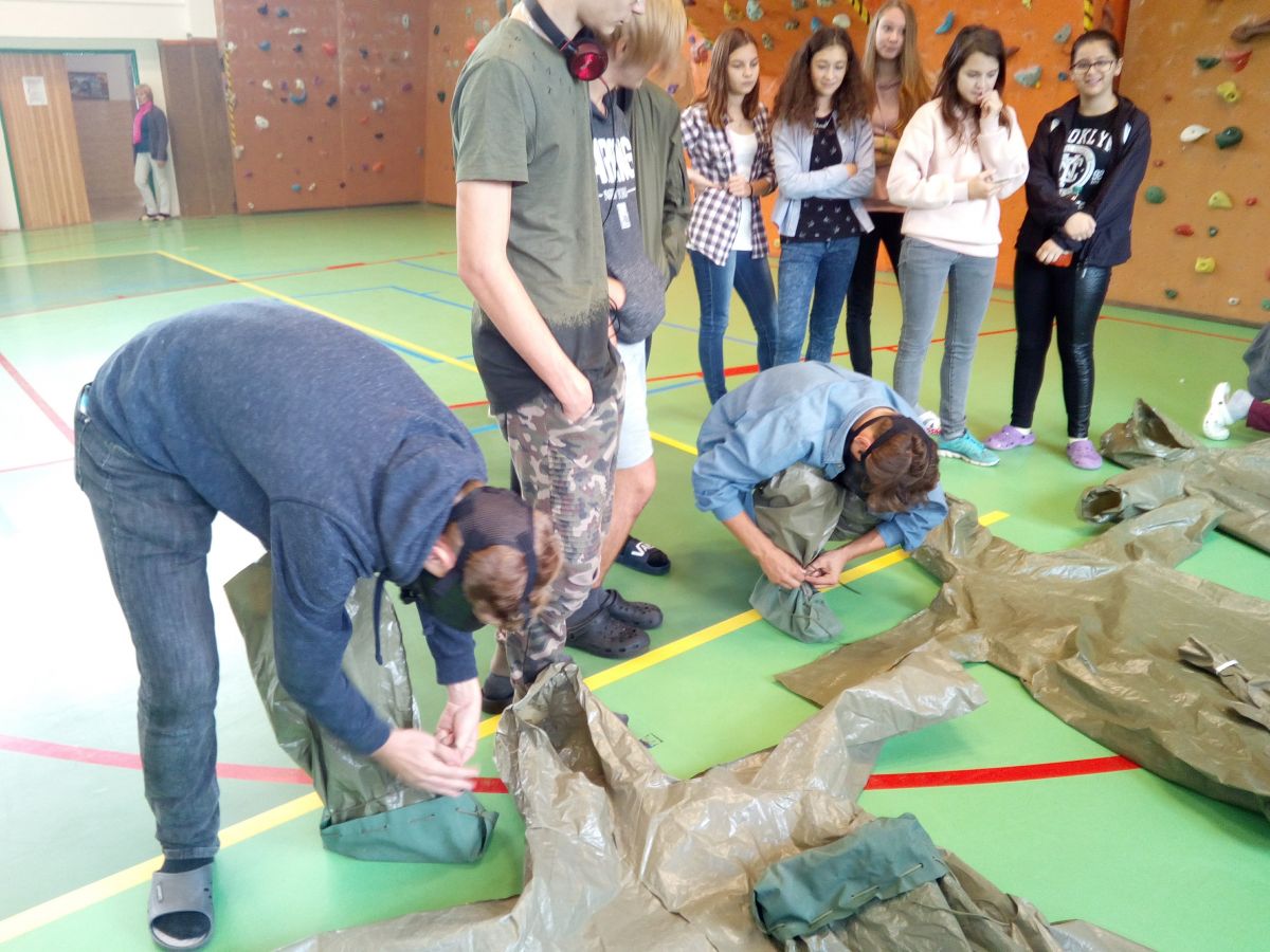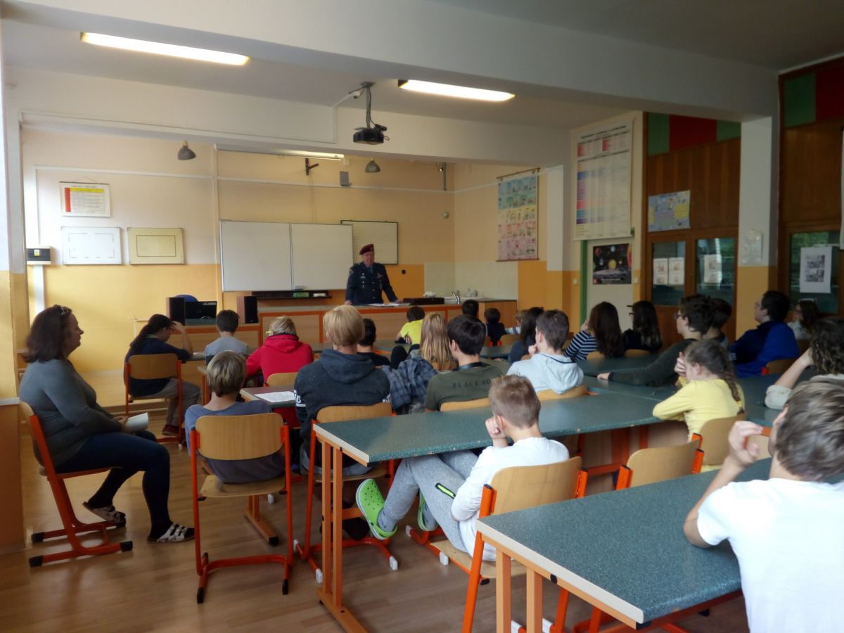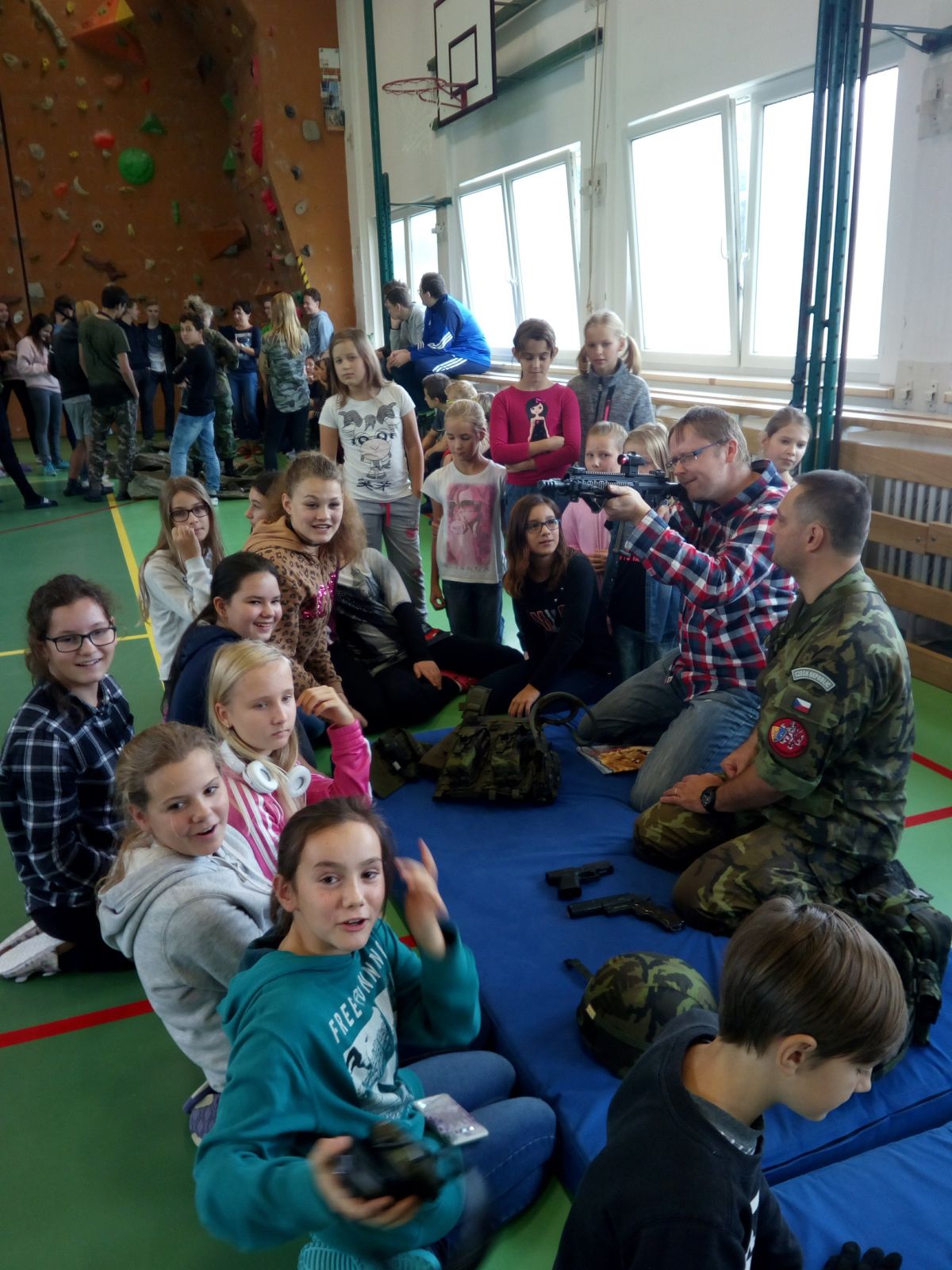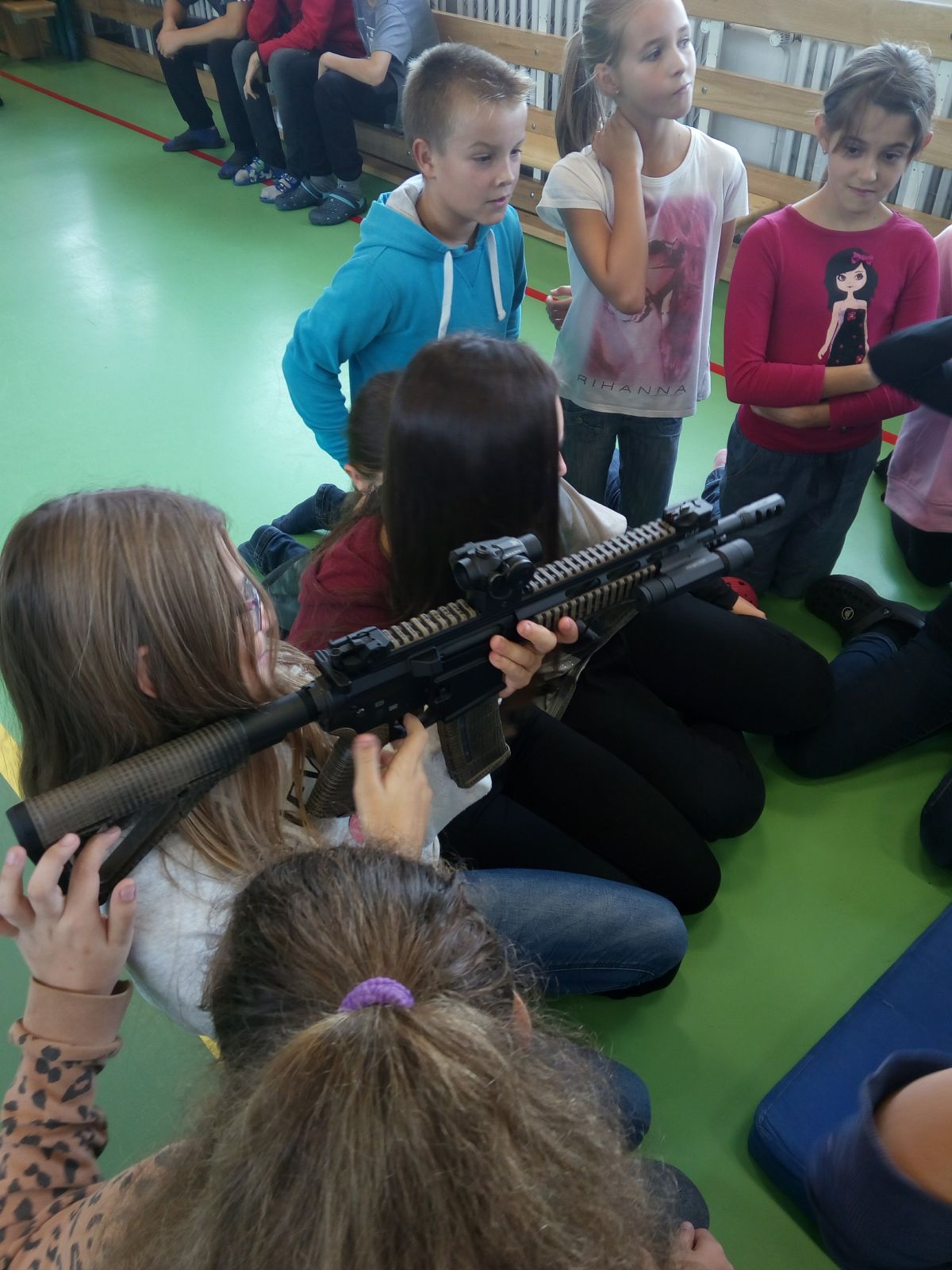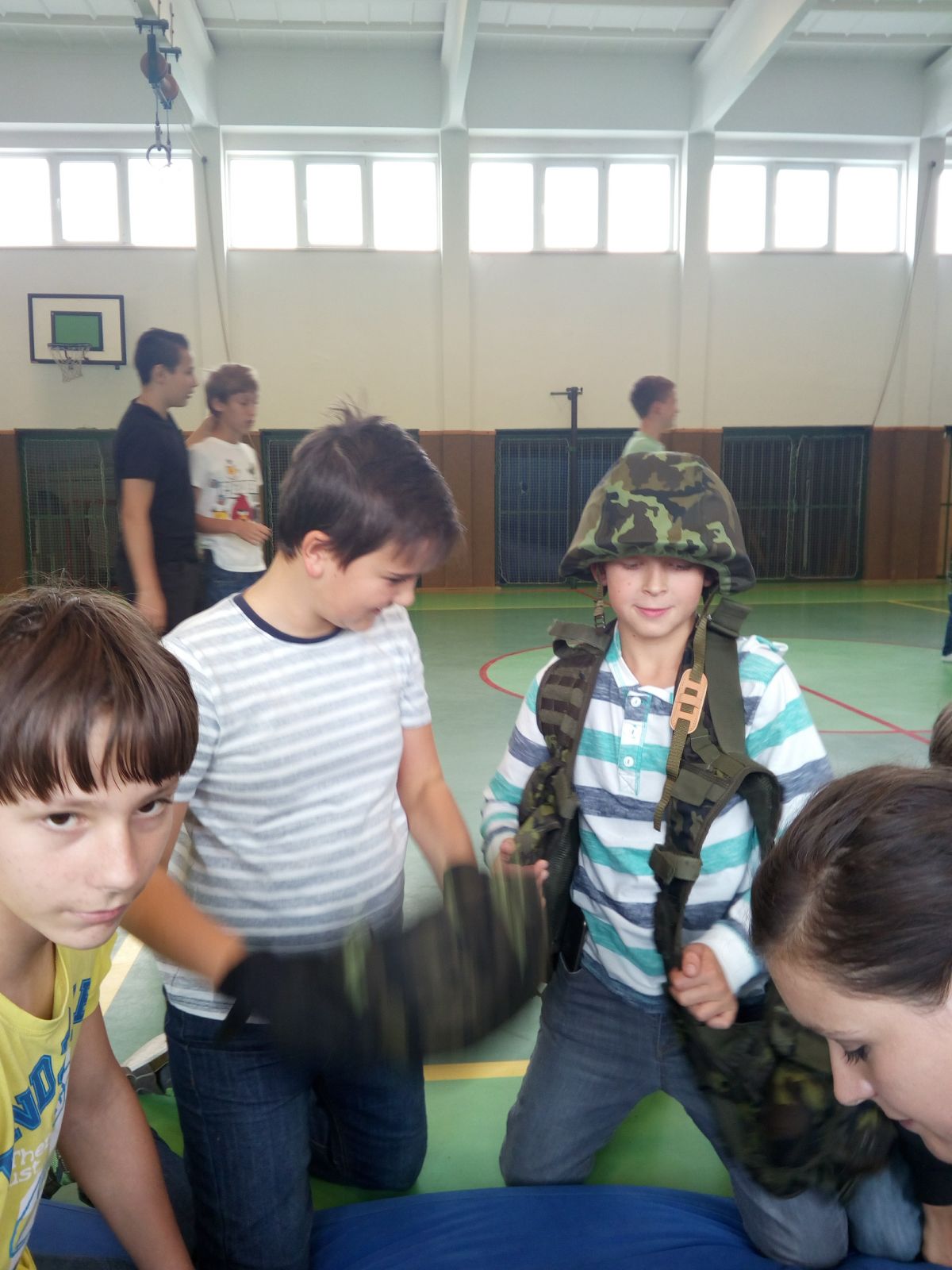 V praktické části žáci zkoušeli, jak se oblékají protichemické obleky a ochranné masky, stříleli na střeleckém trenažeru a prohlédli si současnou výstroj a výzbroj příslušníků armády. Zájemci si také mohli složit a rozložit vystavené zbraně, popřípadě se s nimi i vyfotit. Celá akce byla zajímavá a půlden s armádou žáky bavil.