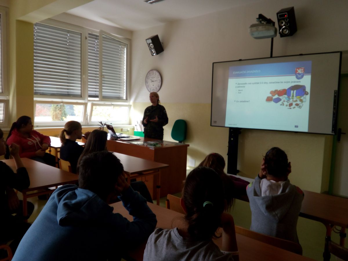 Tato zkratka pod sebou skrývá přípravu občanů k obraně státu. Z Krajského velitelství ve Zlíně přijeli 3 vojáci z povolání, 3 příslušníci aktivních záloh a 1 člen klubu výsadkových veteránů. Ukázka byla rozdělena do dvou částí teorie a praxe. V teoretické části se žáci seznámili s tím, jaké jsou hlavní úlohy armády, dozvěděli se něco o její minulosti a veterán výsadkářů přiblížil žákům pomocí svých vzpomínek bouřlivý rok 1968.