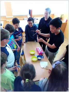 Cizinci ve svých hodinách vytvořili jedinečnou atmosféru a našim žákům umožnili neopakovatelné zážitky jako např. zkusit si jíst čínskými hůlkami nebo napsat své jméno v různých jazycích. Žáci si celý týden evidentně skvěle užívali. Důkazem spokojenosti bylo i přání mnoha z nich, aby se se svými novými přáteli znovu setkali. Poslední den sklidili stážisté obrovský aplaus při závěrečné rozlučkové ceremonii. Pevně věříme, že naše žáky tahle akce inspirovala a maximálně motivovala na výuku angličtiny. Už teď se těšíme na příštího „Edisona“ .