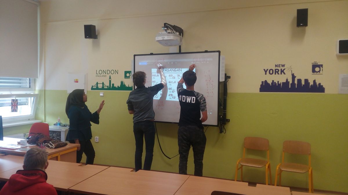 Cizinci ve svých hodinách vytvořili jedinečnou atmosféru a našim žákům umožnili neopakovatelné zážitky jako např. zkusit si napsat své jméno v různých jazycích nebo obléct si indonéský tradiční kroj. Žáci si celý týden evidentně skvěle užívali. Důkazem spokojenosti bylo i přání mnoha z nich, aby se se svými novými přáteli znovu setkali. Pevně věříme, že naše žáky akce inspirovala a maximálně motivovala na výuku angličtiny. Už teď se těšíme na příštího „Edisona“.