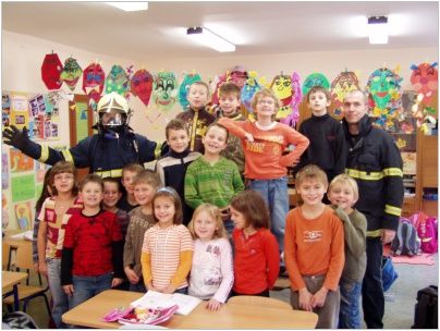 Zábavnou výuku vedou profesionální hasiči ve dvou šedesátiminutových blocích. V nich se žáci učí znát telefonní čísla tísňových volání, zásady sebezáchrany při požáru doma, ve škole nebo ve volné přírodě, opakují si základy zdravovědy při ošetření drobných popálenin, učí se rozpoznat varovné signály a osvojují si komunikaci s operátorem OPIS při nahlašování mimořádné události. Setkání žáků s lektory probíhalo v přátelské a skvělé atmosféře. Tu umocňovaly především soutěže, hádanky, volné vyprávění zážitků a hlavně praktické ukázky – např. oblékání hasičského oděvu, zkoušení helmy a dýchací masky. Své zážitky druháčci zpracovali ve výtvarné výchově v podobě velmi hezkých obrázků, které teď zdobí třídy a jsou nenásilnou připomínkou informací důležitých pro život. Velmi oceňujeme snahu profesionálních hasičů a jejich skvělý přístup k dětem.