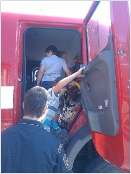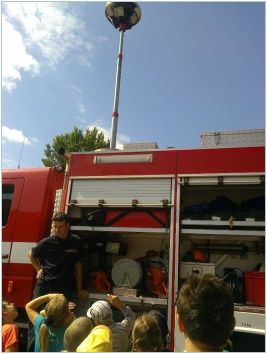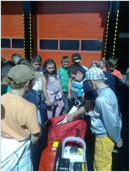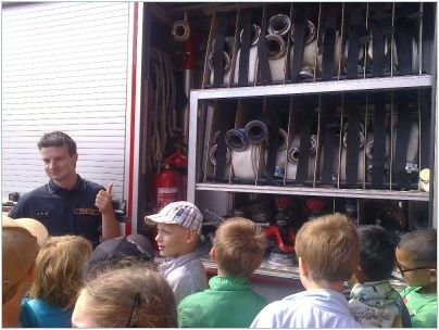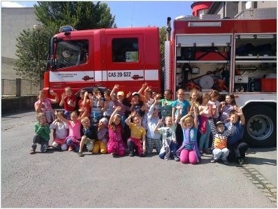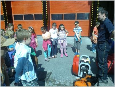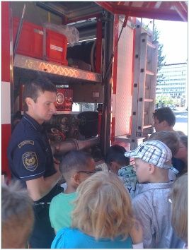 Na závěr děti navštívily stanici vsetínských profesionálních hasičů, kde si společně zopakovaly již získané poznatky a seznámily se s jednotlivými hasičskými vozy a jejich vybavením. Všichni měli možnost na vlastní oči vidět sílu hydraulického vyprošťovacího zařízení. Zajímavá byla ukázka zajištění zraněného ve vakuové matraci. Nezapomenutelným zážitkem byla pro děti prohlídka kabiny zásahového vozu.