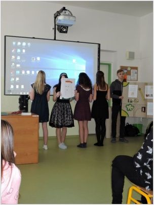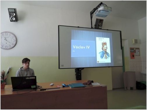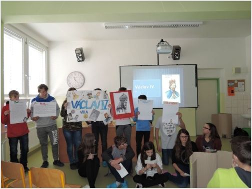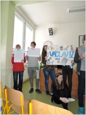 Tentokrát padla volba na dějepisné téma a to Karel IV. Navíc jsme si chtěli takto ještě jednou připomenout jeho loňské výročí, 700 let od jeho narození. Žáci si už nejméně měsíc dopředu začali připravovat zvolené téma z jeho života, od postavy Jana Lucemburského, dětství Karla IV., významné události jeho vlády, významné stavby spojené s jeho vládou, osudy jeho manželek, až po postavu Václava IV. Pracovalo se na přípravě prezentací a referátů, divadelního představení, výrobě plakátů, různých rekvizit, kreslení obrázků v hodinách výtvarné výchovy. Někde se do příprav zapojila celá třída, jak to mělo být, jinde to zůstalo na jednotlivcích. Nakonec výsledky své práce předvedly všechny třídy dne 20.4.2017 před svými spolužáky z jiných tříd. Jednotlivá vystoupení hodnotila porota a poté přidělovala body. Třída, která získala nejvíce bodů, nakonec vyhrála a za odměnu získala hodinu bowlingu zdarma. Chtěla bych poděkovat všem třídám za přípravu, hlavně vyzdvihnout přípravu žáků 8. ročníků, a třídním vyučujícím za pomoc.