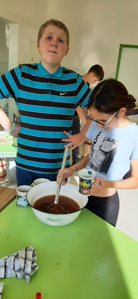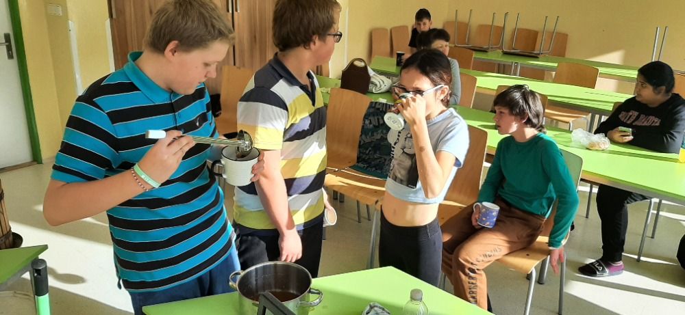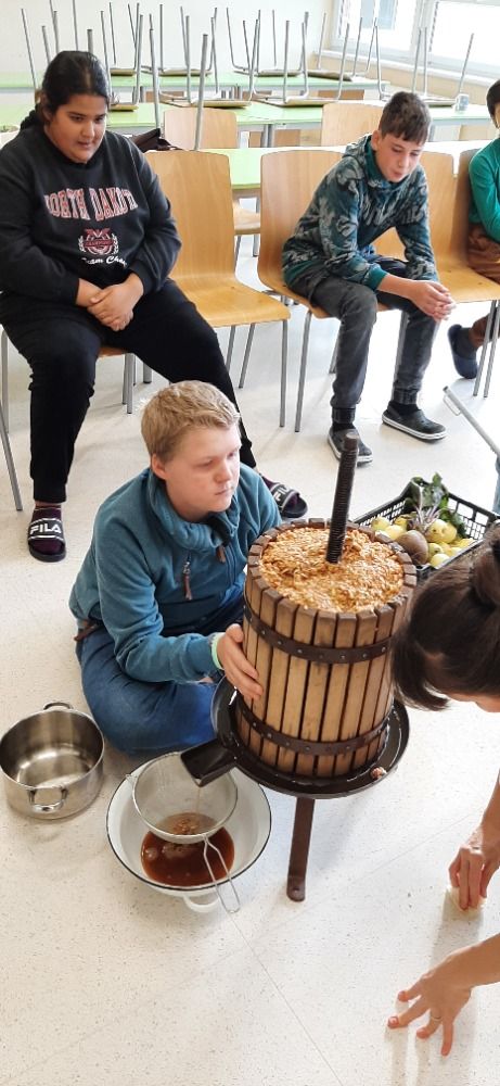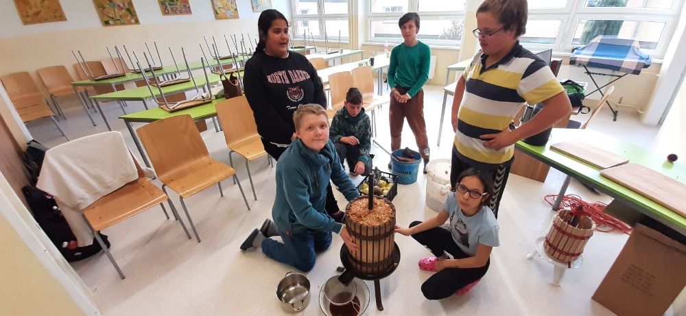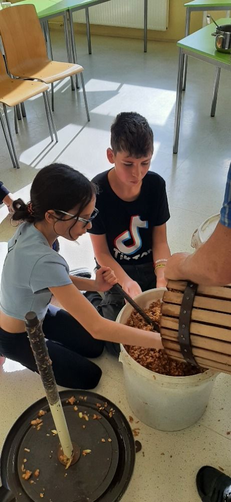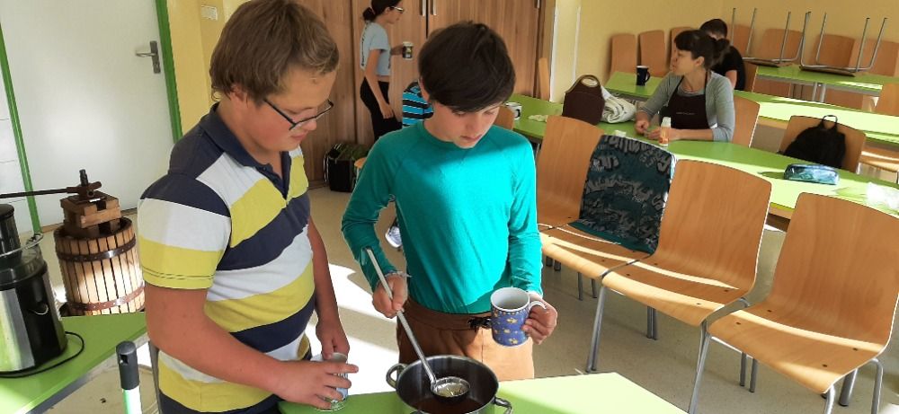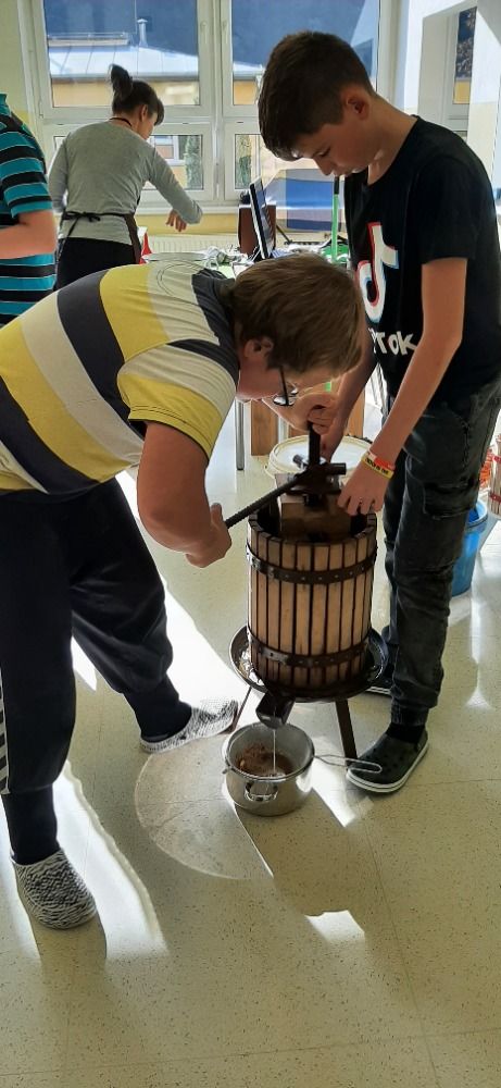 Pracovní dopoledne bylo náročnější než sezení v lavici, ale sladká odměna v podobě vlastnoručně vyrobeného moštu určitě stála za to!